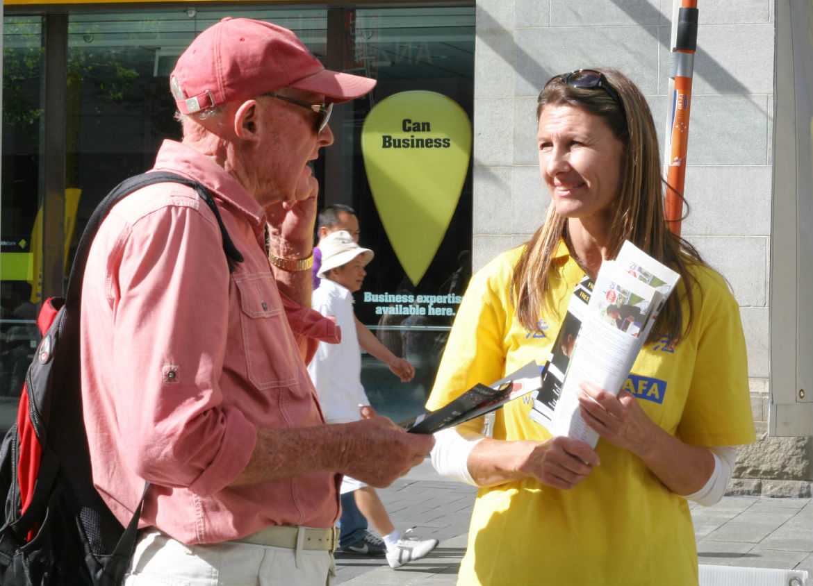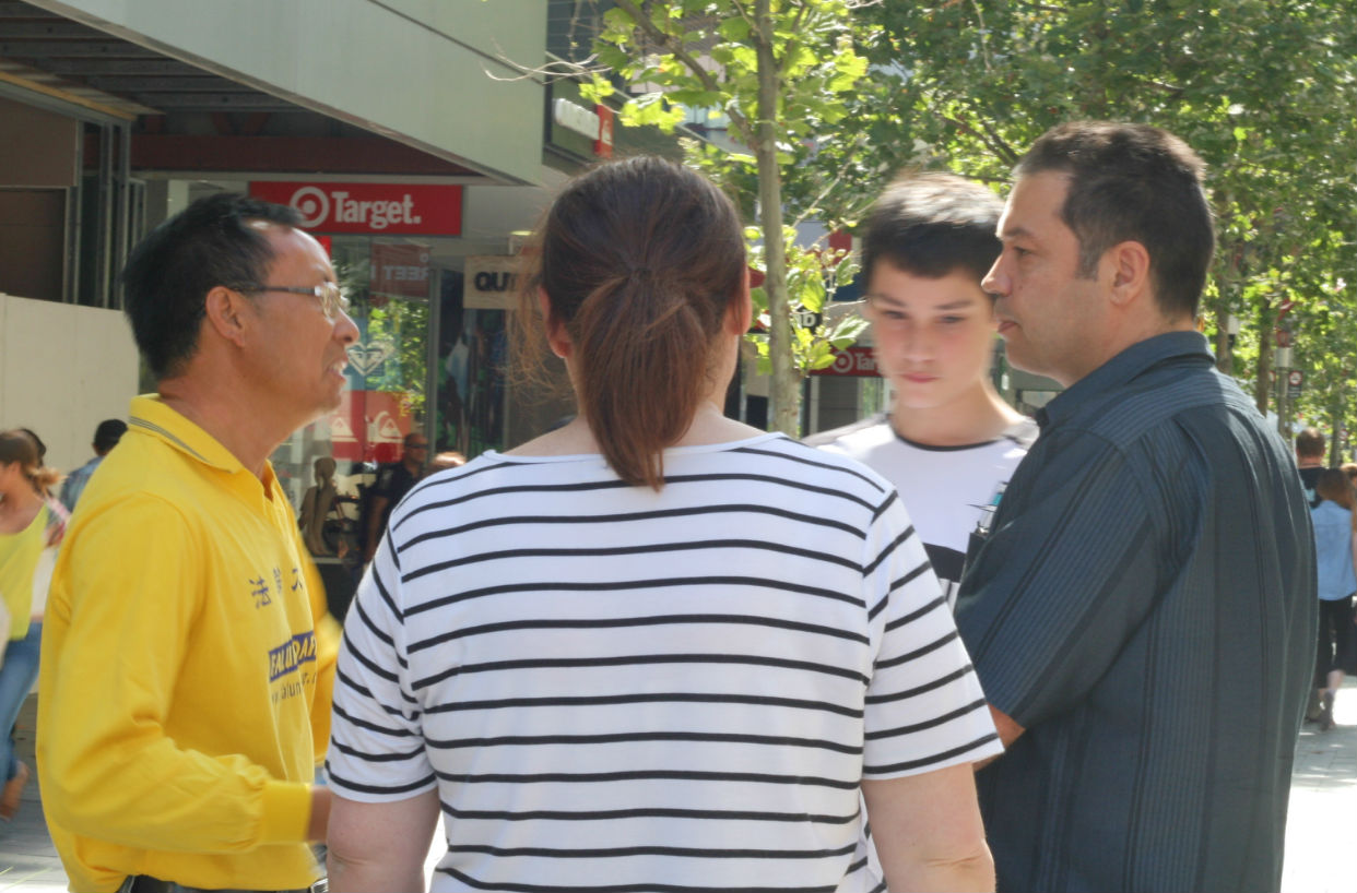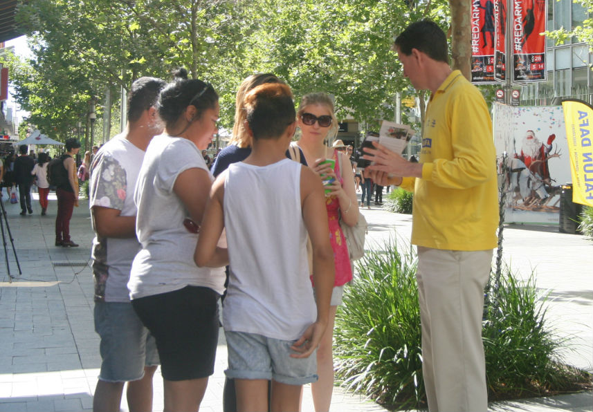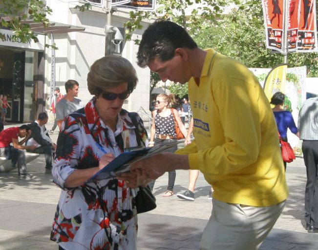 【明慧网二零一四年十一月二十三日】(明慧记者穆文清澳洲珀斯采访报道)二零一四年十一月二十二日,在西澳首府珀斯市行人如织的步行街,当地法轮功学员征集签名反对中共活摘器官,引起民众的关注,纷纷签名支持法轮功学员。