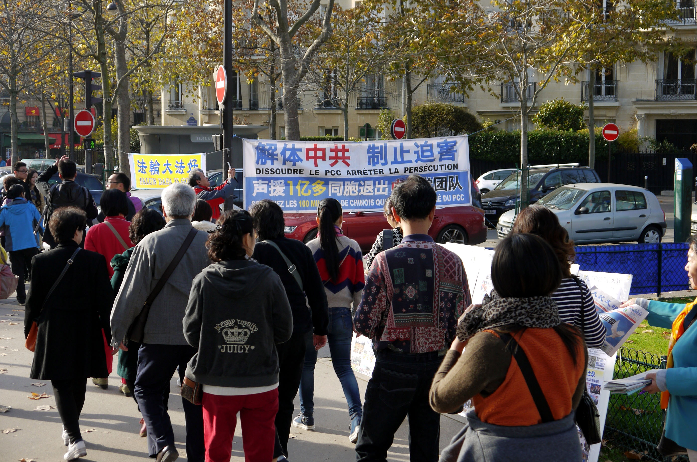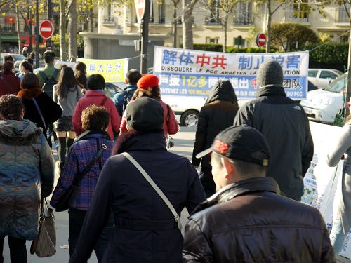 在巴黎拉法耶特大商场,每天都有成千的中国游客购物和办退税,这里也是法轮功学员劝三退的好场所。有一个山东人,六十多岁,来法国探望女儿。近一个月的时间里,他天天来到商场门口,帮法轮功学员发真相资料,帮劝三退,非常热心。有时学员很难劝退的人,他就对他们讲自己在中国的亲身经历,曾经被打成右派,他家庭遭受的迫害,很多年轻中国游客听到后都表示理解。