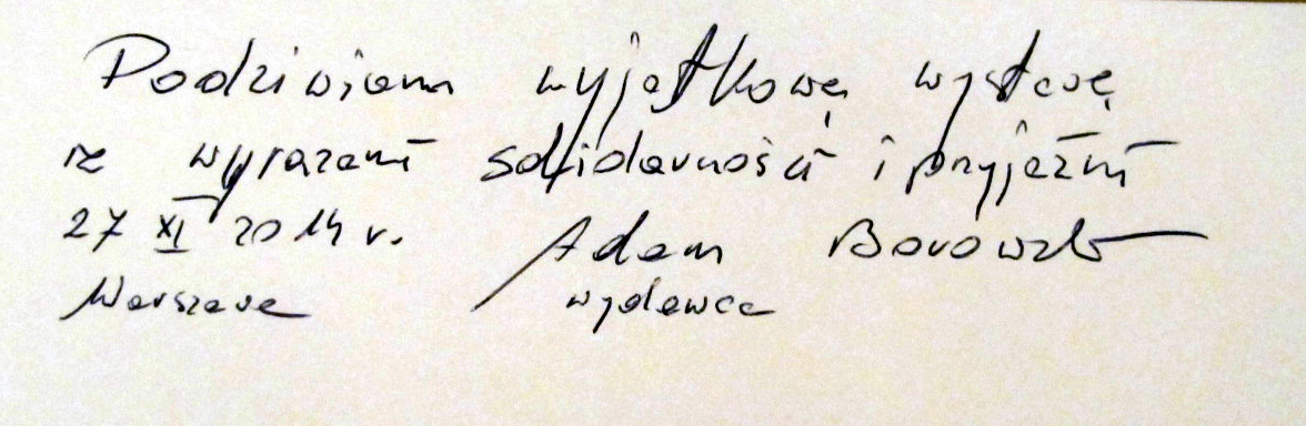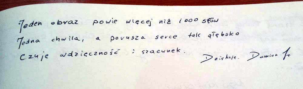 ![]() Adam Borowski先生留言:“这是一个很特殊的展览,我由衷地感到敬佩,它表达了一种坚强的精神和坚持这种精神的团体力量。” |