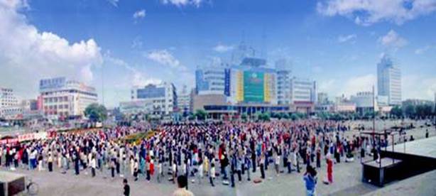 一九九九年七月前,佳木斯市法轮功学员在市政广场集体炼功