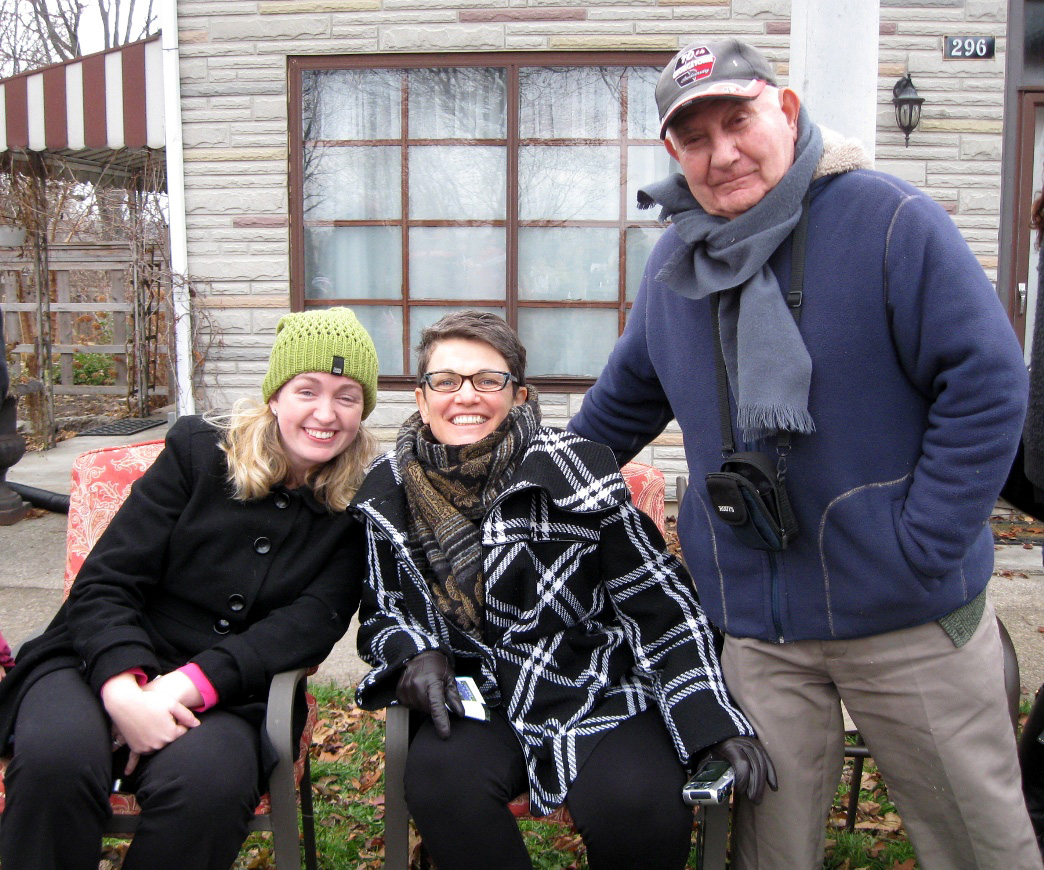![]() 图8: 居民Roger 和Linda夫妻俩与女儿Sara一家三口都很喜欢法轮功学员的游行队伍。 |