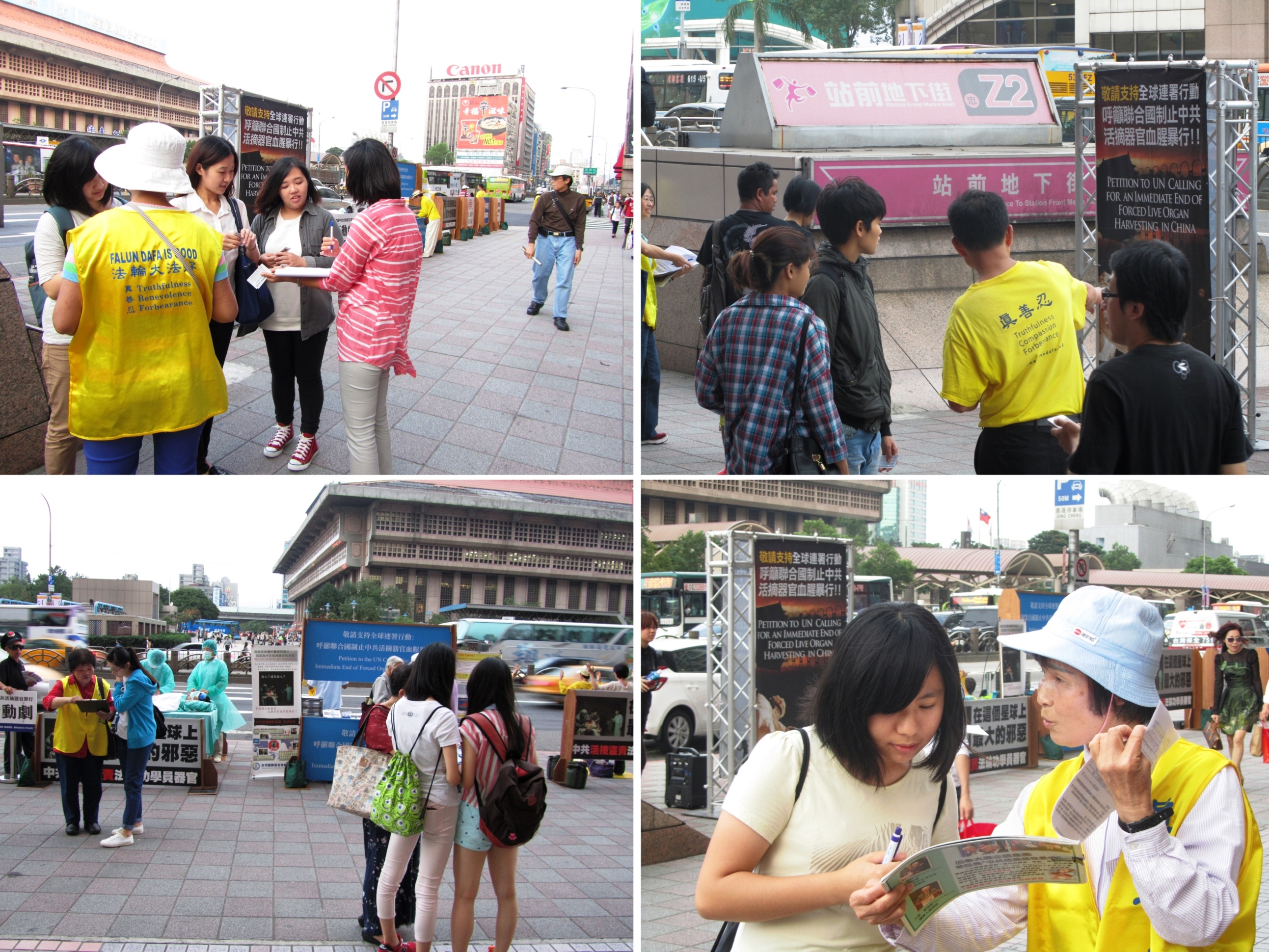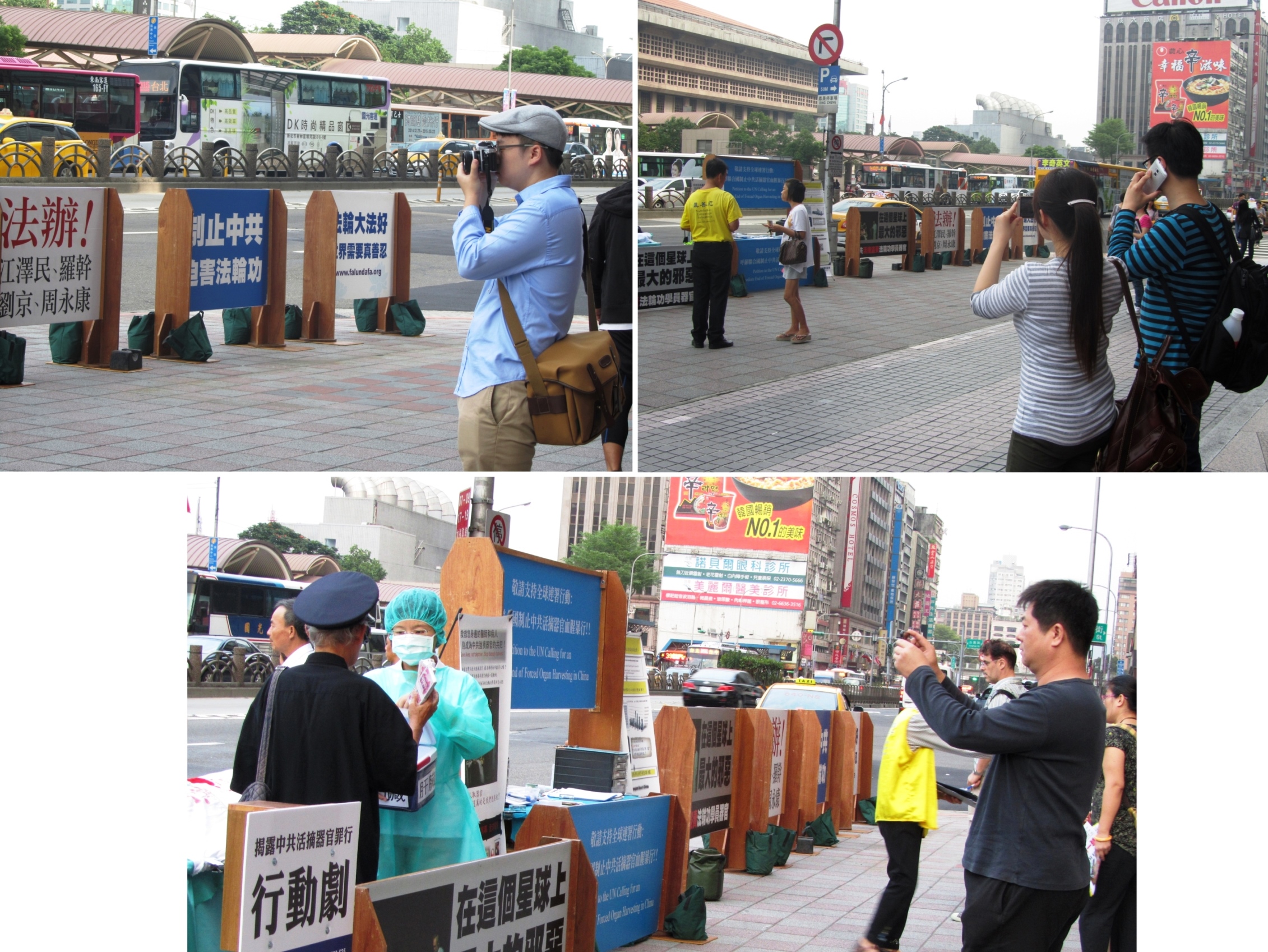 二零一四年十一月三十日,法轮功学员在台北车站商圈──忠孝西路一段、南阳街口商业大楼前的步行广场上,以模拟活摘器官的演示行动剧,揭露中共活摘盗卖法轮功学员器官的邪恶罪行,并向民众征签,汇集正义的支持,制止迫害。