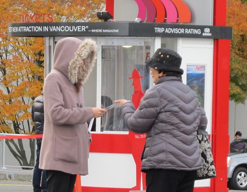 温哥华市中心的加拿大广场(Canada Place),有一个伸入海中的巨大的五帆标记,叫五帆船,是温哥华的地标建筑,那里具有现代化都市的一切特征,旁边是史坦利公园(Stanley Park),海湾对面是北温的松鸡山(Grouse Mountain),山顶大半年有积雪,风景秀丽,如诗如画,是来温哥华旅游的必到之地,也是法轮功学员讲真相、劝三退的好地方。