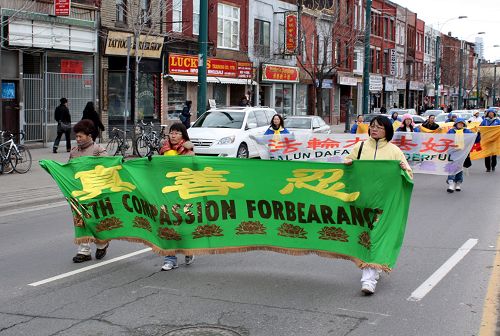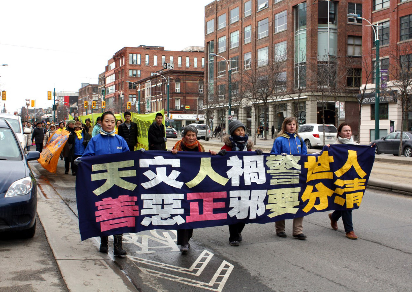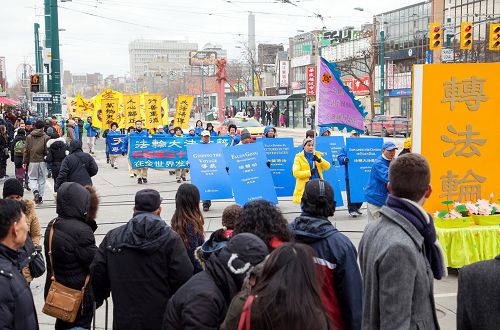 二零一四年三月二十二日,多伦多法轮功举办反迫害大游行,揭示中共对法轮功长达十五年的迫害,展示法轮功的美好,并呼吁制止迫害。