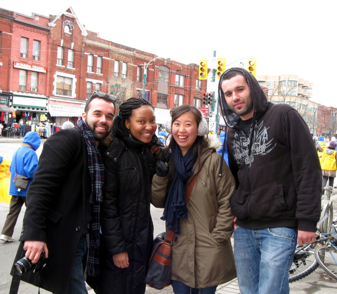 多伦多唐人街服装店的印度裔员工Mohammed Abdul走到街上给游行队伍拍照。他告诉记者,“法轮功很好,对多伦多有好处,人们喜欢法轮功。这些法轮功修炼者很美,我喜欢这群人。”