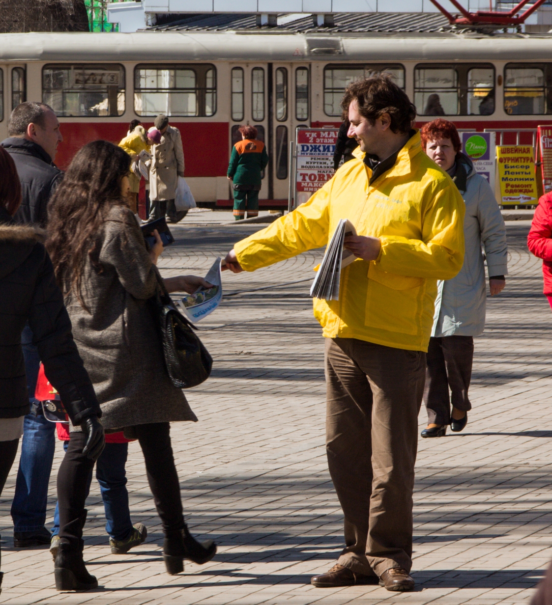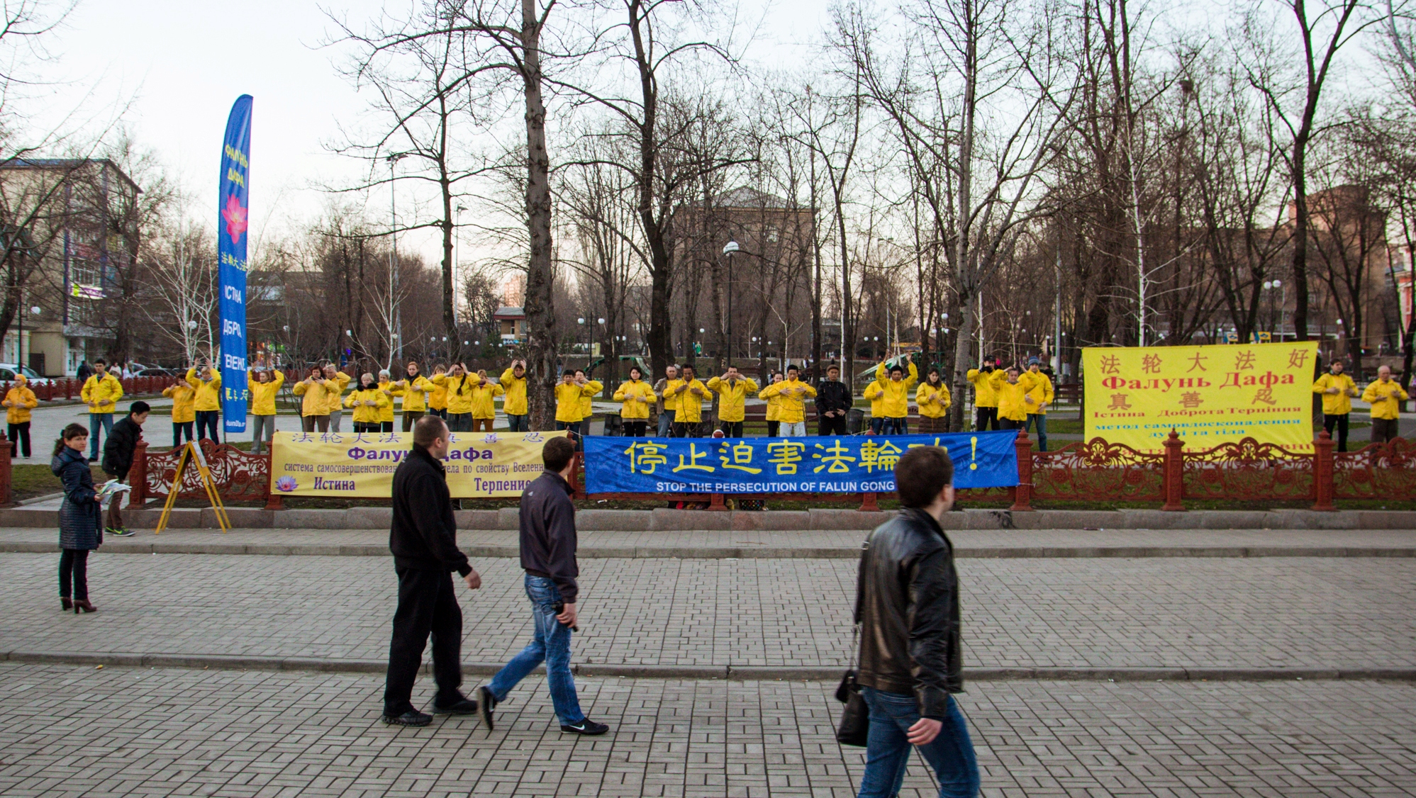 法轮功学员向顿涅茨克市民派发真相资料
