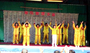 法轮功学员在公园的草坪上炼功,并义务教功;同时向游人发送法轮功的真相资料;遇到可贵的中国人就向他们劝三退,并递上中文的真相材料。中午的时候,法轮功学员们在公园里的舞台上进行了法轮功的功法演示,由法轮功学员表演的舞狮子和二胡演奏,同样受到了人们的欢迎。NPO法人矢作川与三河武士论坛的理事长Mr.Kito与夫人愉快地与法轮功学员合影留念。