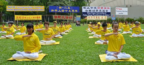 ![]() 新加坡法轮功学员集体炼功。 |