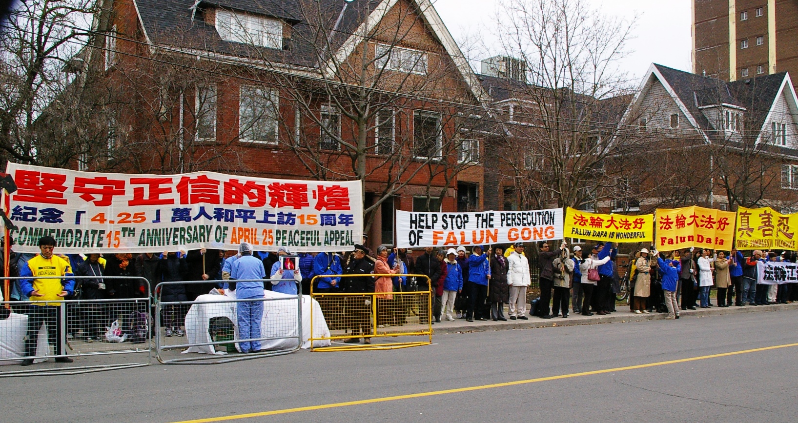 多伦多法轮大法学会发言人契普卡(Joel Chipkar)发言说:一九九九年四月二十五日,十五年前的今天,一万名法轮功学员汇集在北京,为宪法所保障的公民信仰自由和平请愿。这一事件一时间为世界各地媒体纷纷报道。