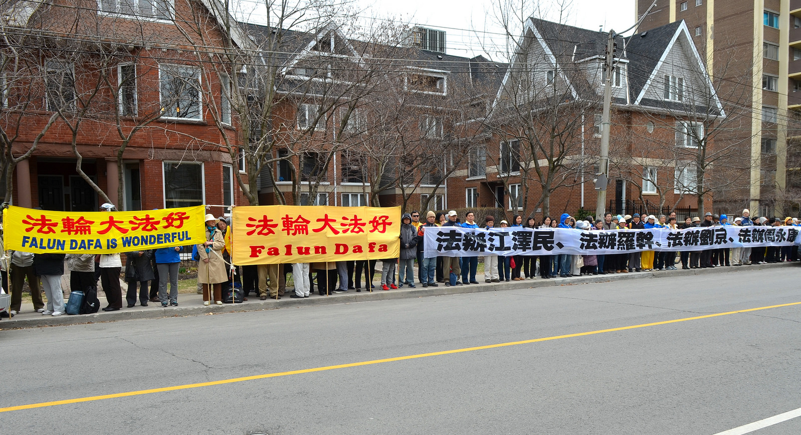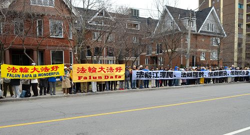 ![]() 图1-3:二零一四年四月二十五日,法轮功学员在多伦多中领馆前集会,揭露中共对法轮功的残酷迫害。 |