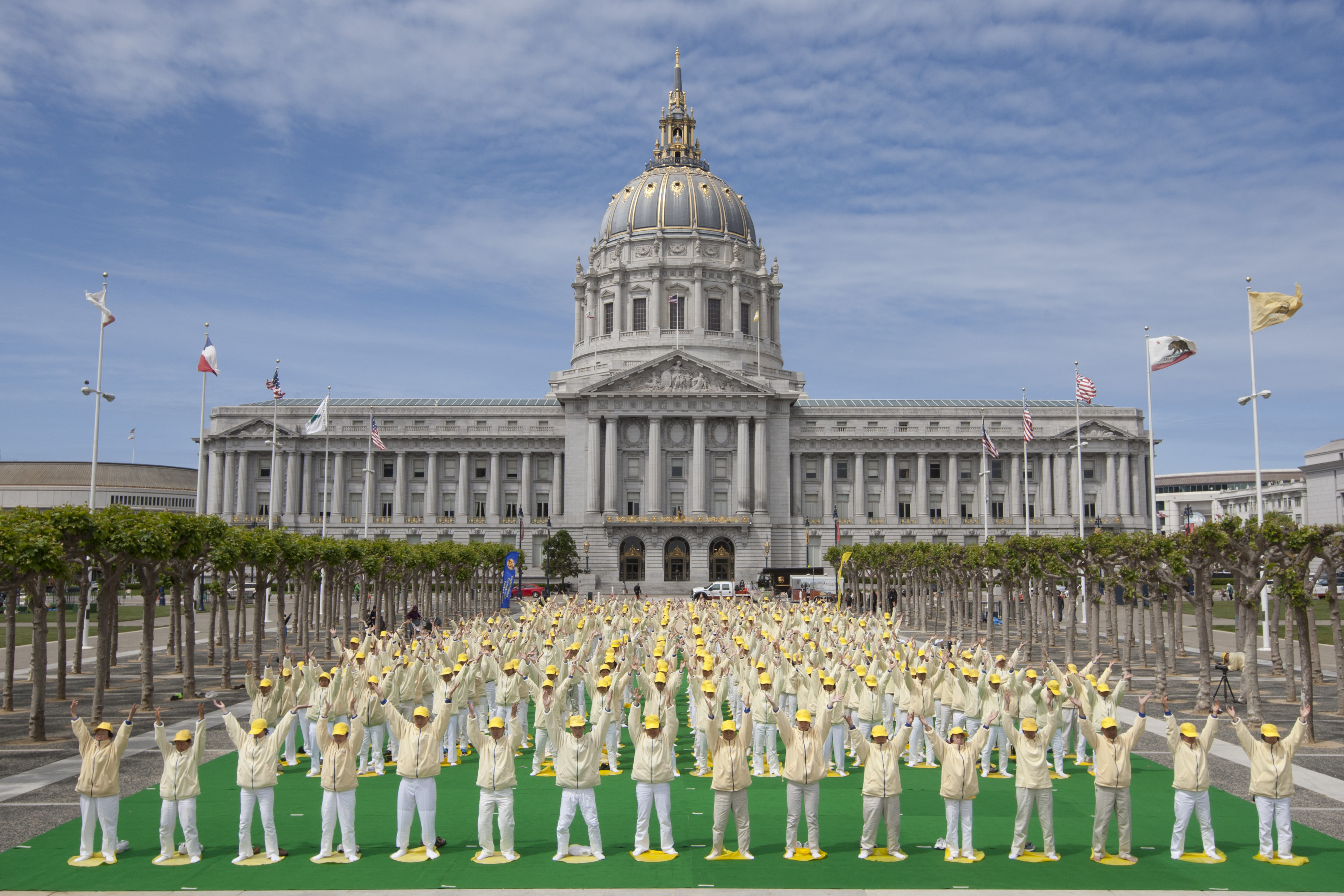 ![]() 法轮功学员在旧金山市政府前炼功 |