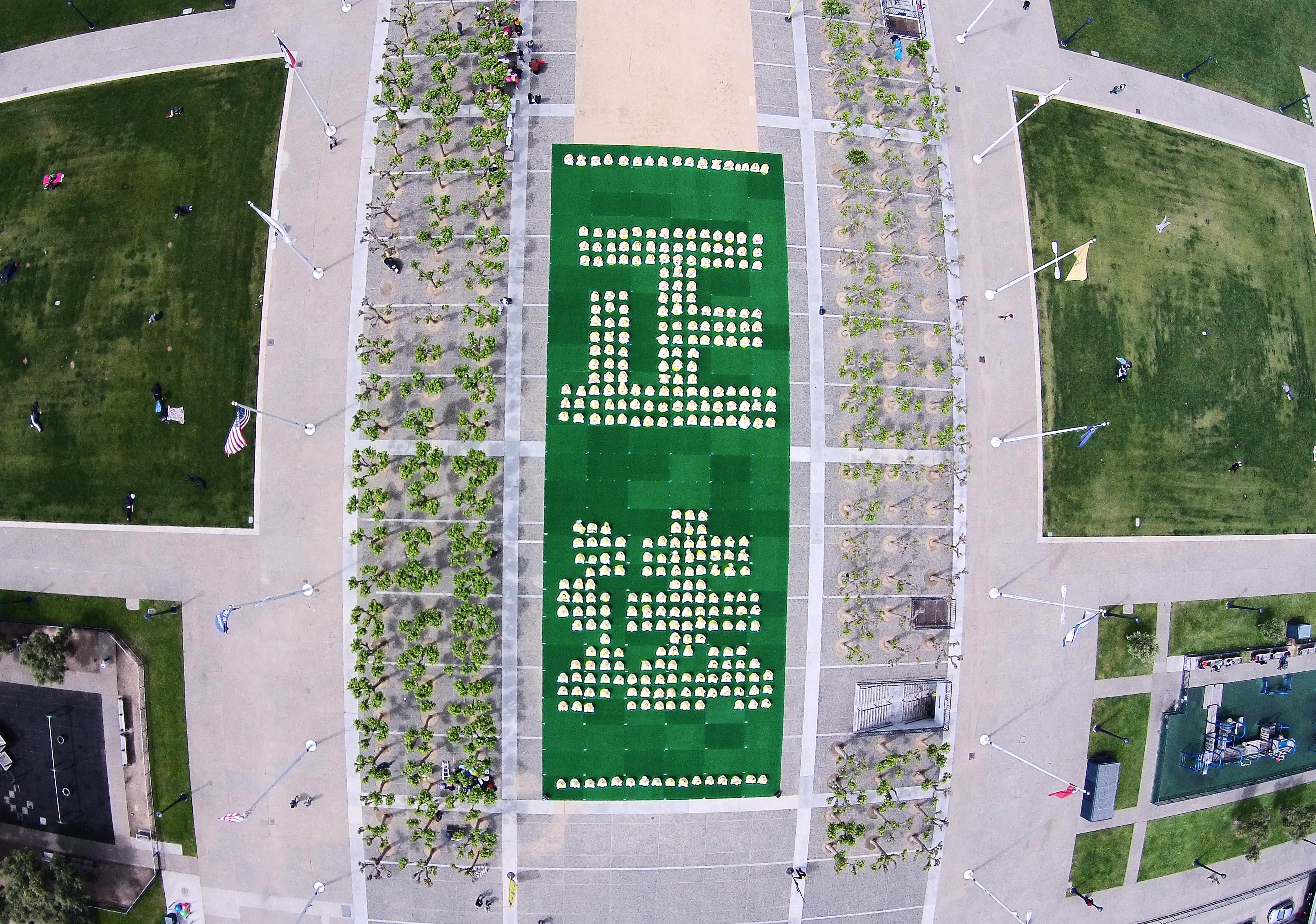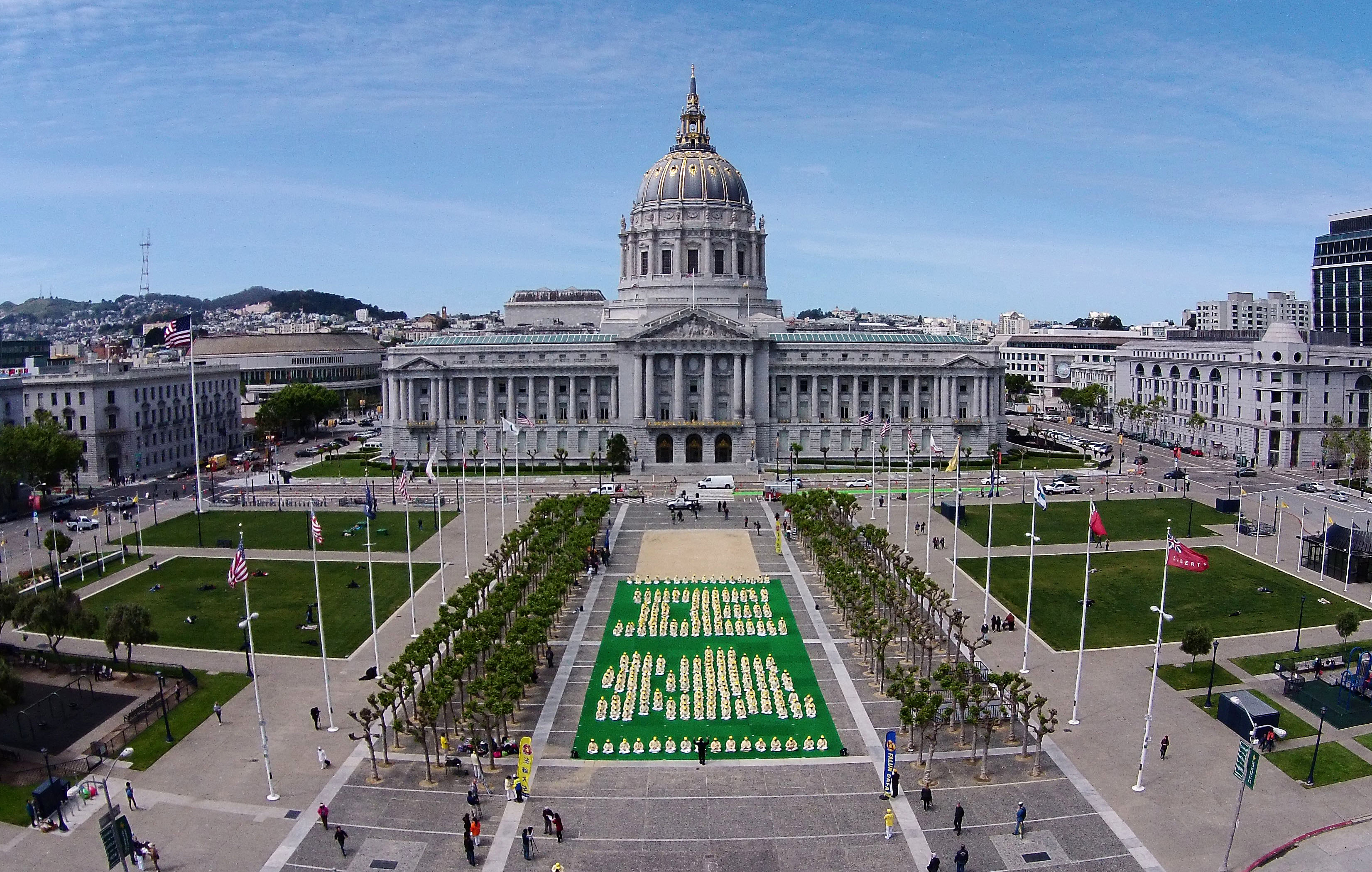 ![]() 法轮功学员在旧金山市政府广场排出“正法”二字 |