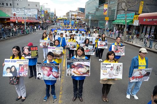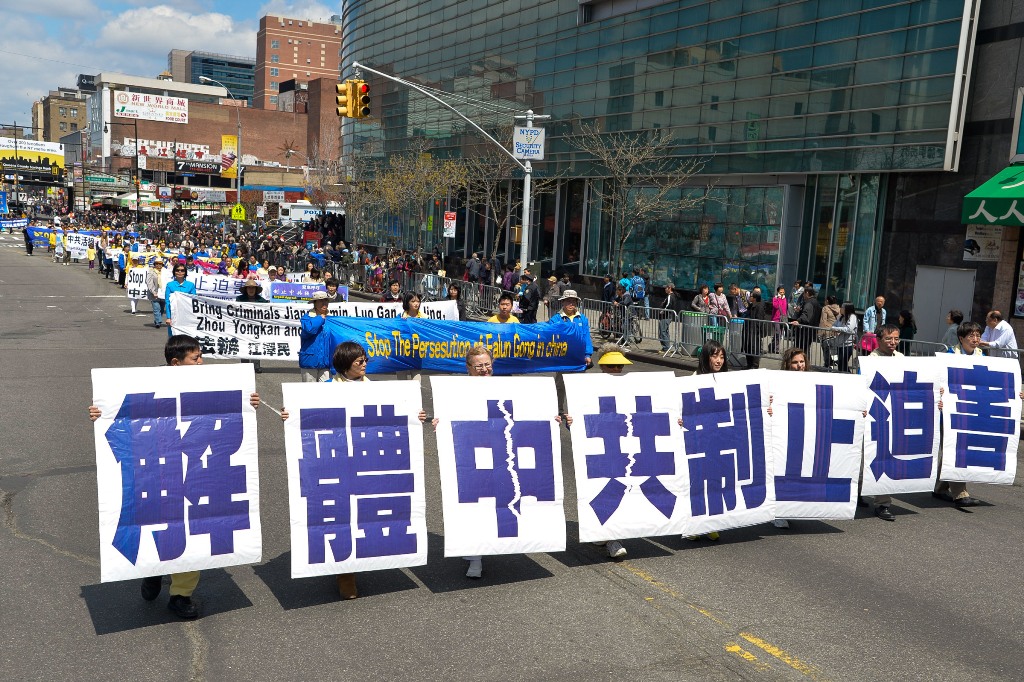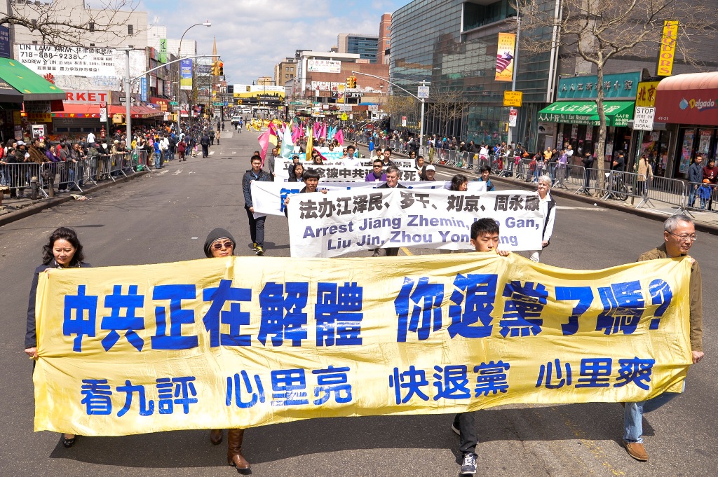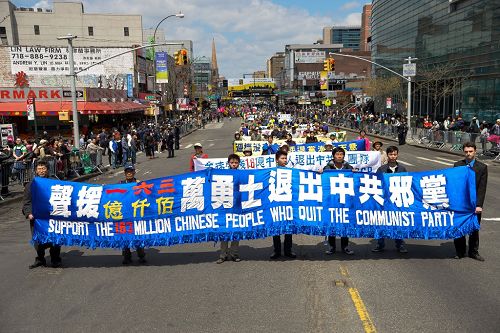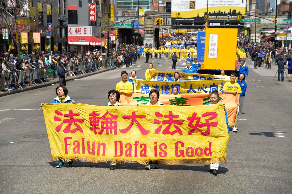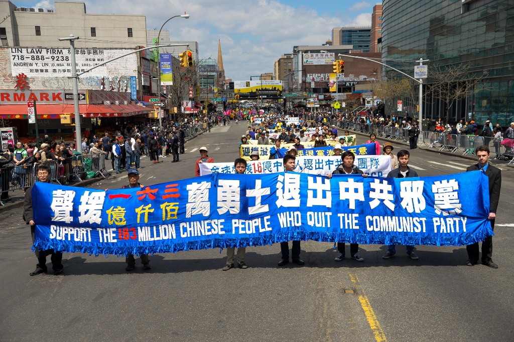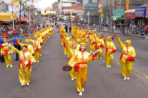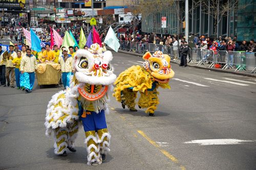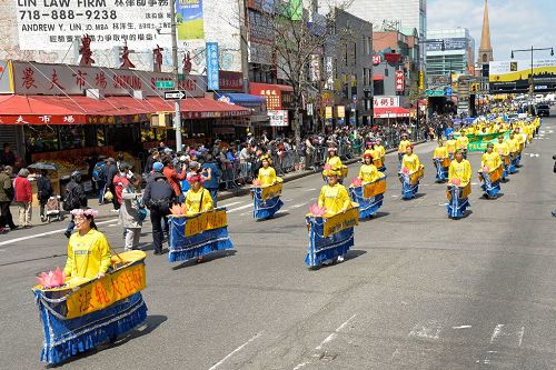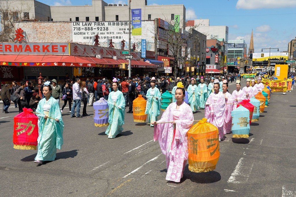 游行所到之处,受到了当地华人的热烈欢迎,。人们纷纷拿起智能手机拍照,要留下这珍贵的场景。法拉盛华人以说普通话为主,近年来有大量华人从内地涌入。