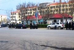 ![]() 景县公安局和610人员 | ![]() 在法院门口戒严的警察及警车 |