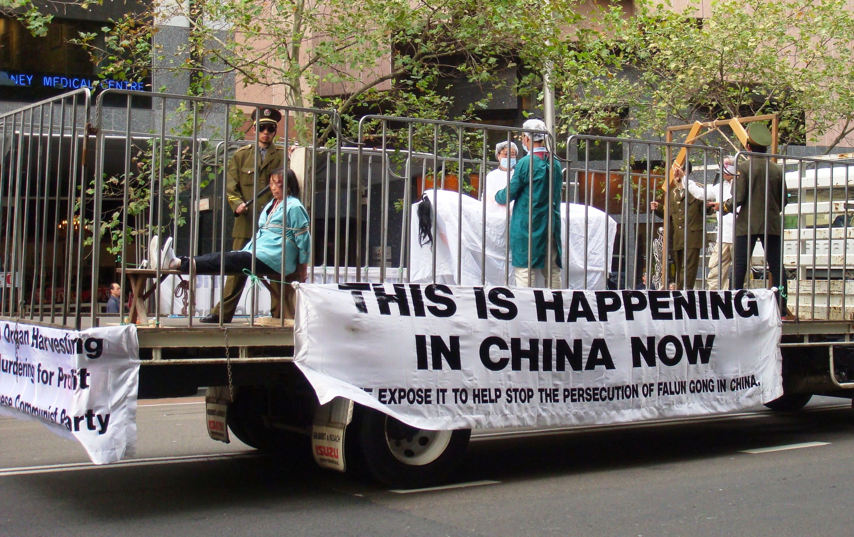 在以“酷刑正在中国发生”、和“全球联署呼吁联合国制止中共活摘器官”和“停止迫害法轮功”等大横幅后面是百位身穿素白衣衫的法轮功女学员,她们双手捧着已被中共迫害致死的部份中国法轮功学员遗像,神情庄严肃穆地行进着。再后面,无数位法轮功学员手举着《制止迫害法轮功》、《解体中共 停止迫害》、 《天灭中共 天佑中华》等中英文横幅和标语牌。法轮功学员浩浩荡荡,庄严而肃穆的神情,让人们由衷敬佩和思索:为何中共要持续十几年的残酷迫害这么一大群平和而又善良的人们?