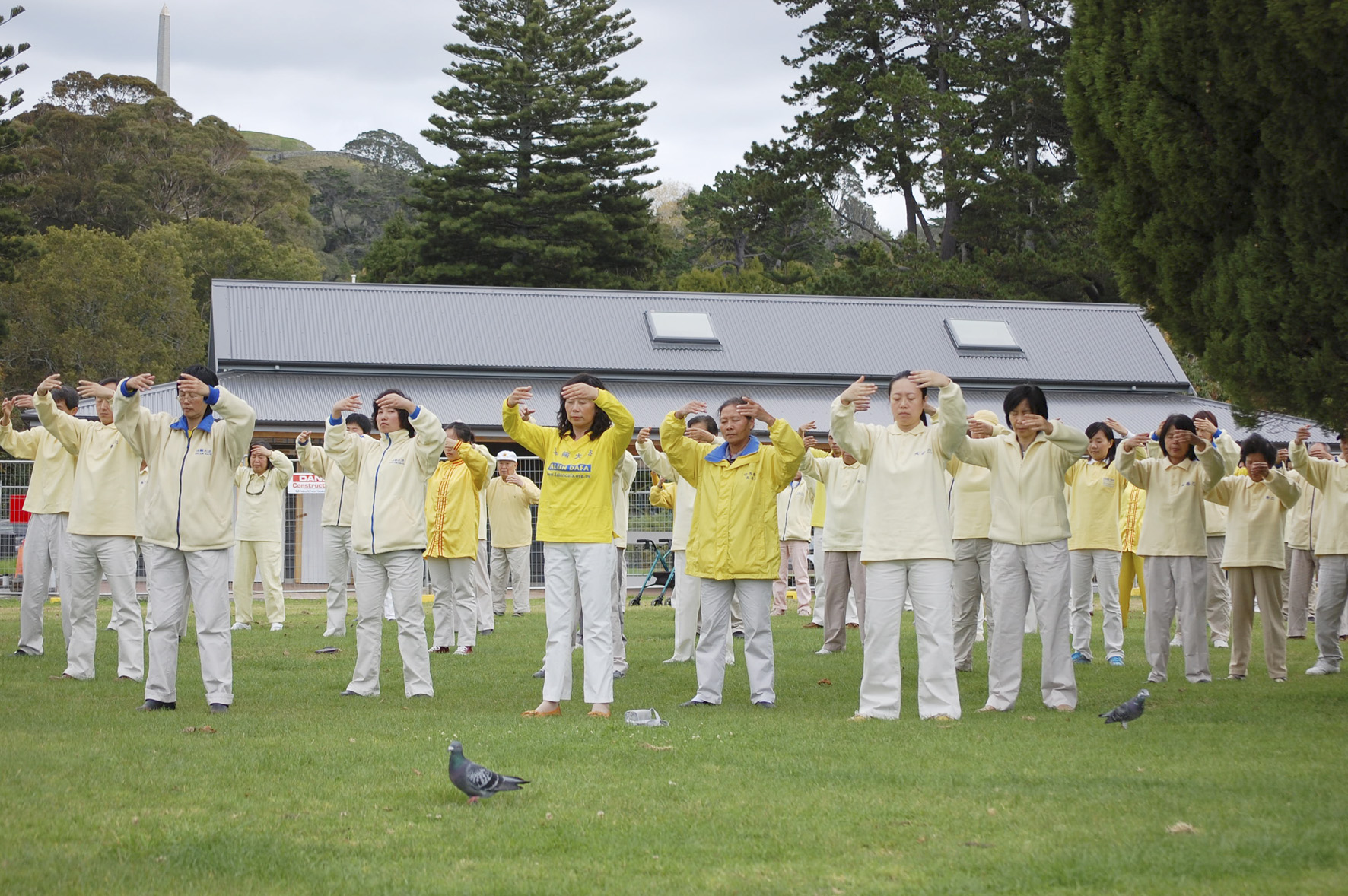 ![]() 新西兰法轮功学员在一树山集体炼功 |