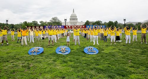 ![]() 大华府地区法轮功学员在国会山前集体炼功 |