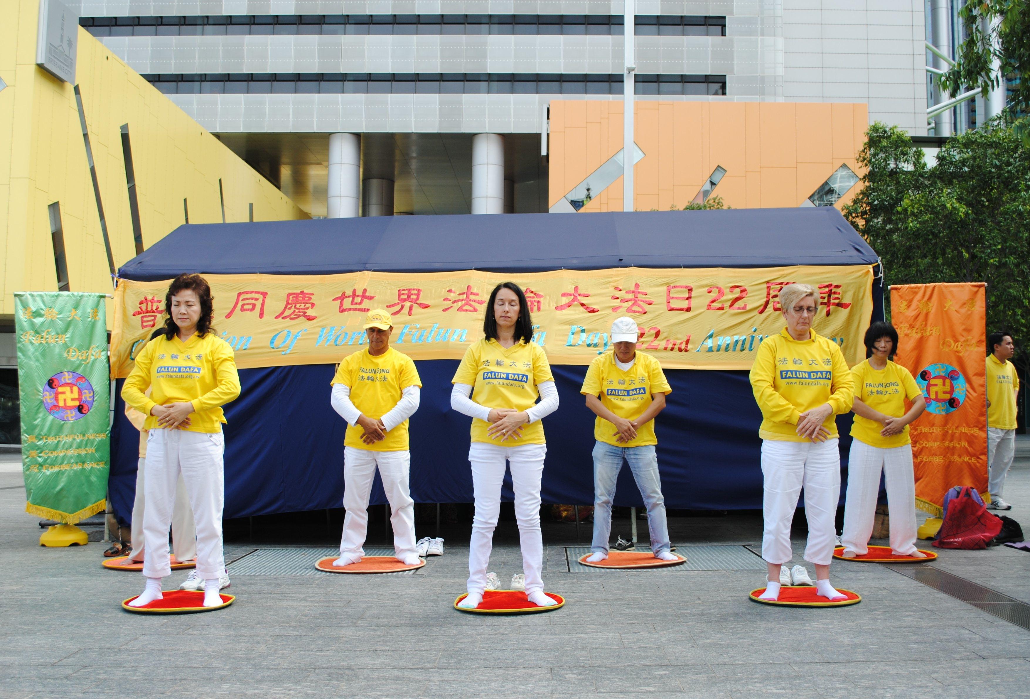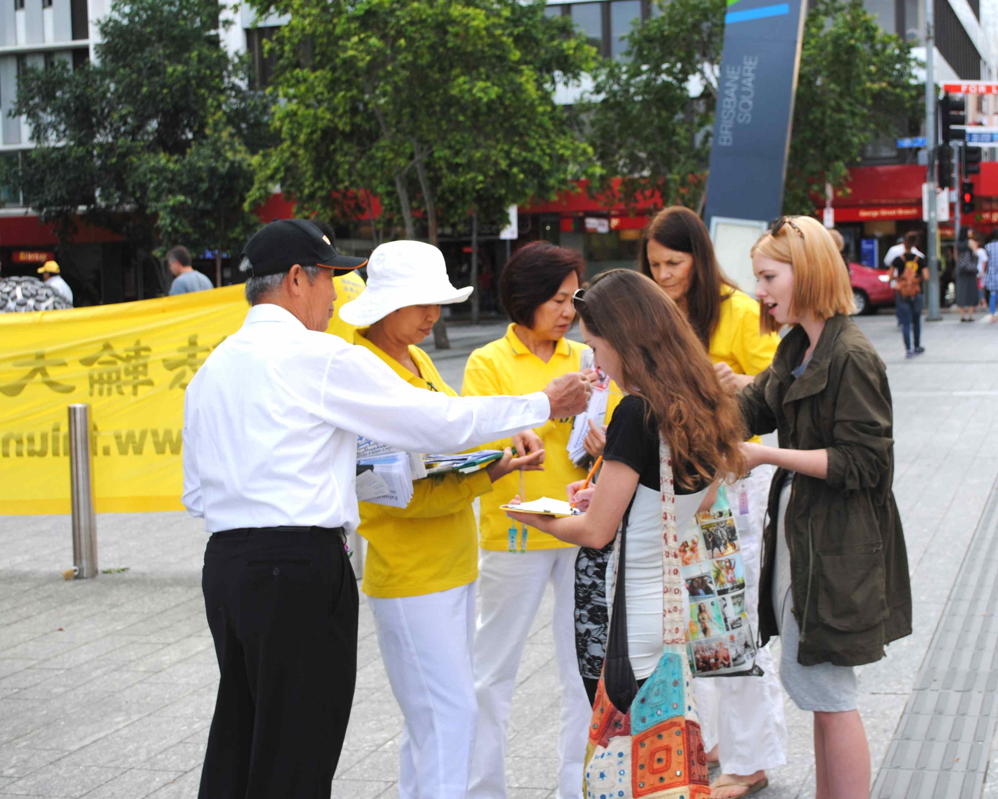 ![]() 法轮功学员在布里斯本广场展示法轮功功法 |
