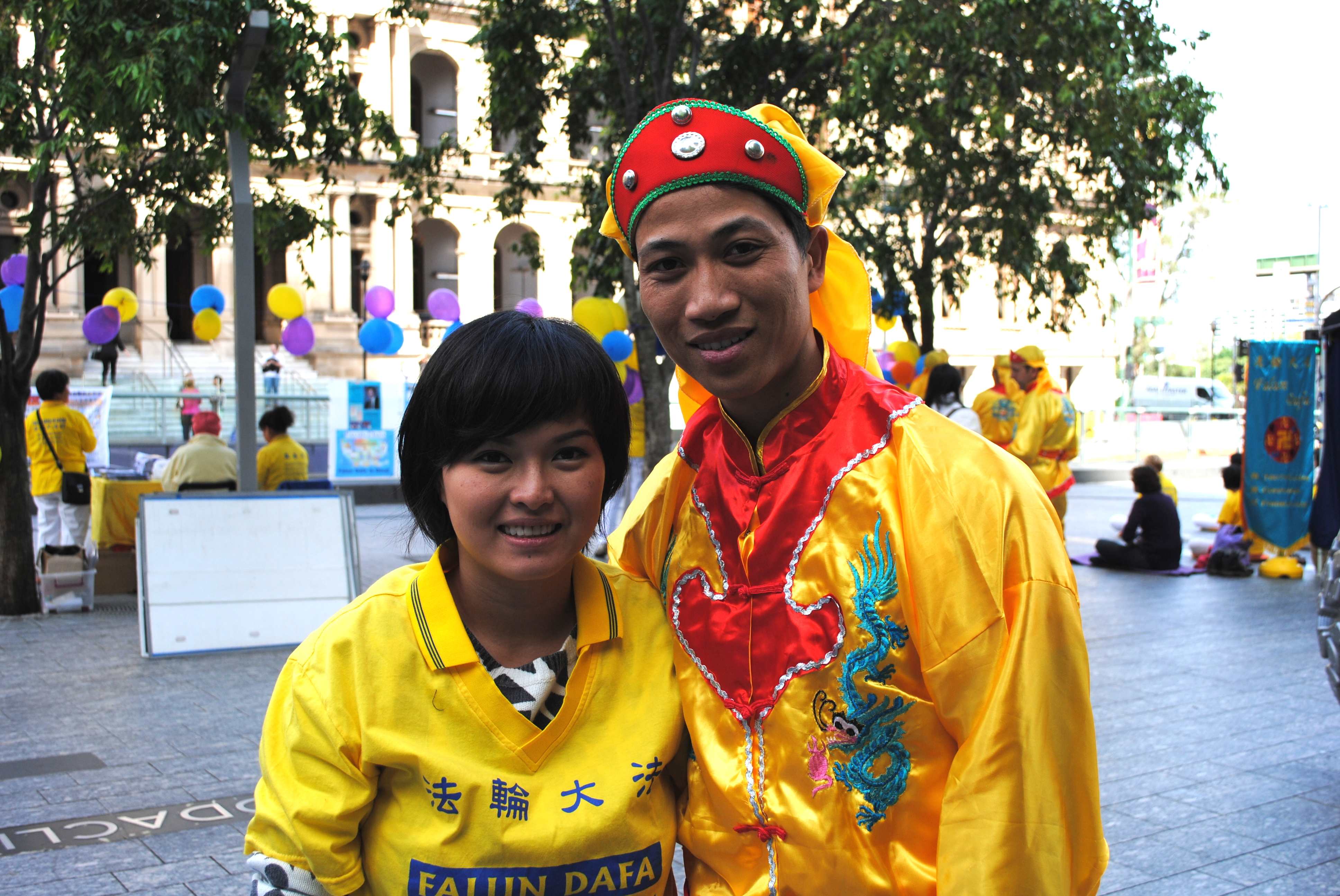 本次庆祝活动中,舞龙表演广受民众的喜爱。身为表演者之一的法轮功学员汉克(Hank)开心地说:“作为一个中国人,能够在异国他乡体会到真正的传统中国文化,我非常兴奋也非常高兴。”“我从小学到大学都在大陆受教育,在中国大陆中共对传统文化的破坏,我觉得是一种遗憾,每个中国人,龙的传人,接受不到真正的传统文化,我觉得是非常可悲的。”