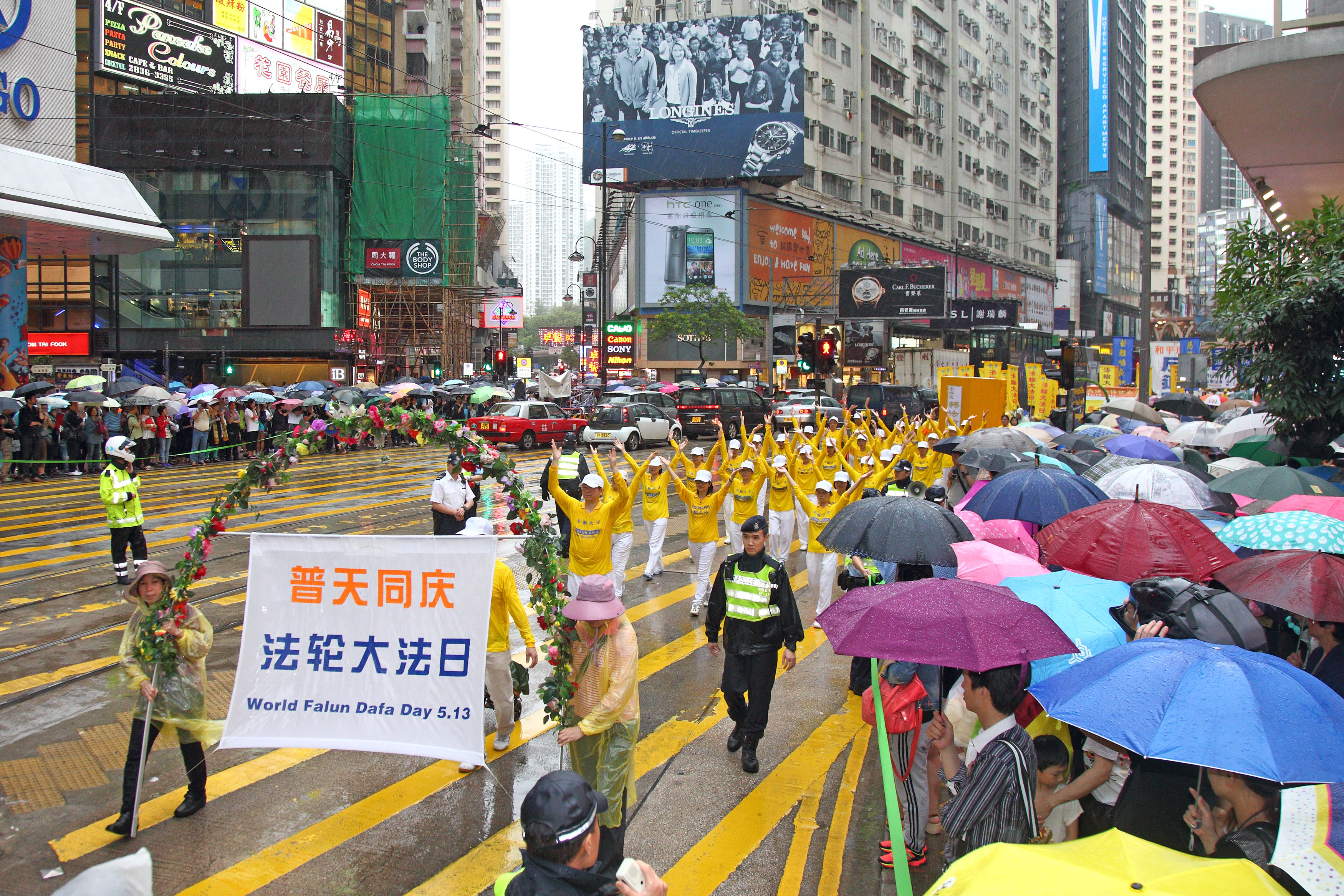 二零一四年五月十日,法轮功学员在香港举行集会及游行,庆祝法轮大法弘传世界二十二周年暨师尊六十三华诞。