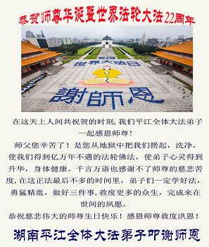 • 长沙大法弟子恭贺世界法轮大法日暨师尊华诞(27条)