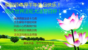 • 重庆大法弟子恭贺世界法轮大法日暨师尊华诞(24条)