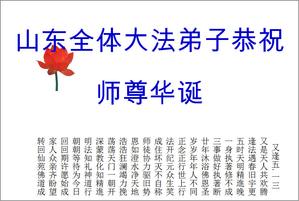 • 山东大法弟子恭贺世界法轮大法日暨师尊华诞(33条)