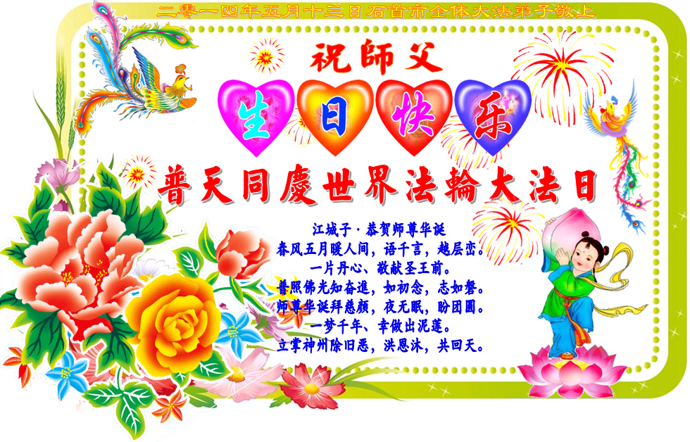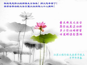 • 江苏大法弟子恭贺世界法轮大法日暨师尊华诞(25条)