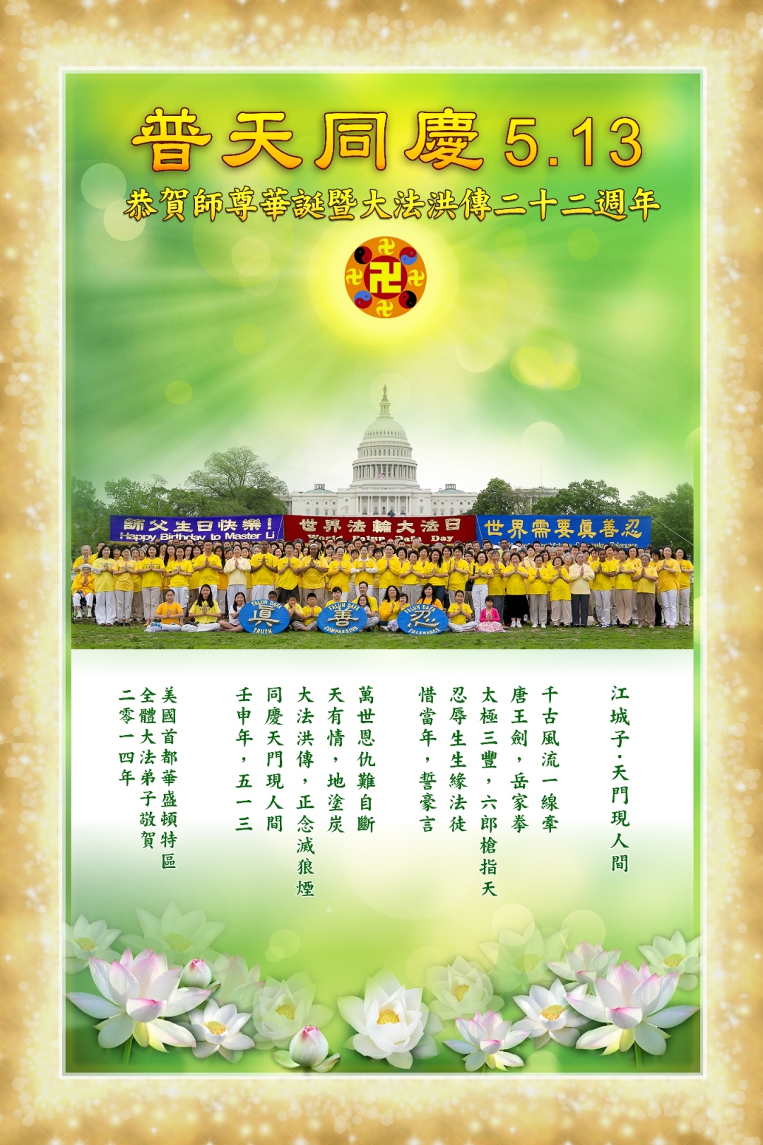 • 美国大法弟子恭贺世界法轮大法日暨师尊华诞