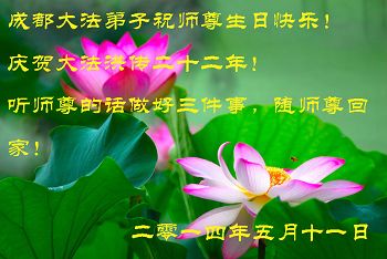• 成都大法弟子恭贺世界法轮大法日暨师尊华诞(27条)