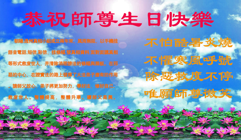 • 北京大法弟子恭贺世界法轮大法日暨师尊华诞(32条)