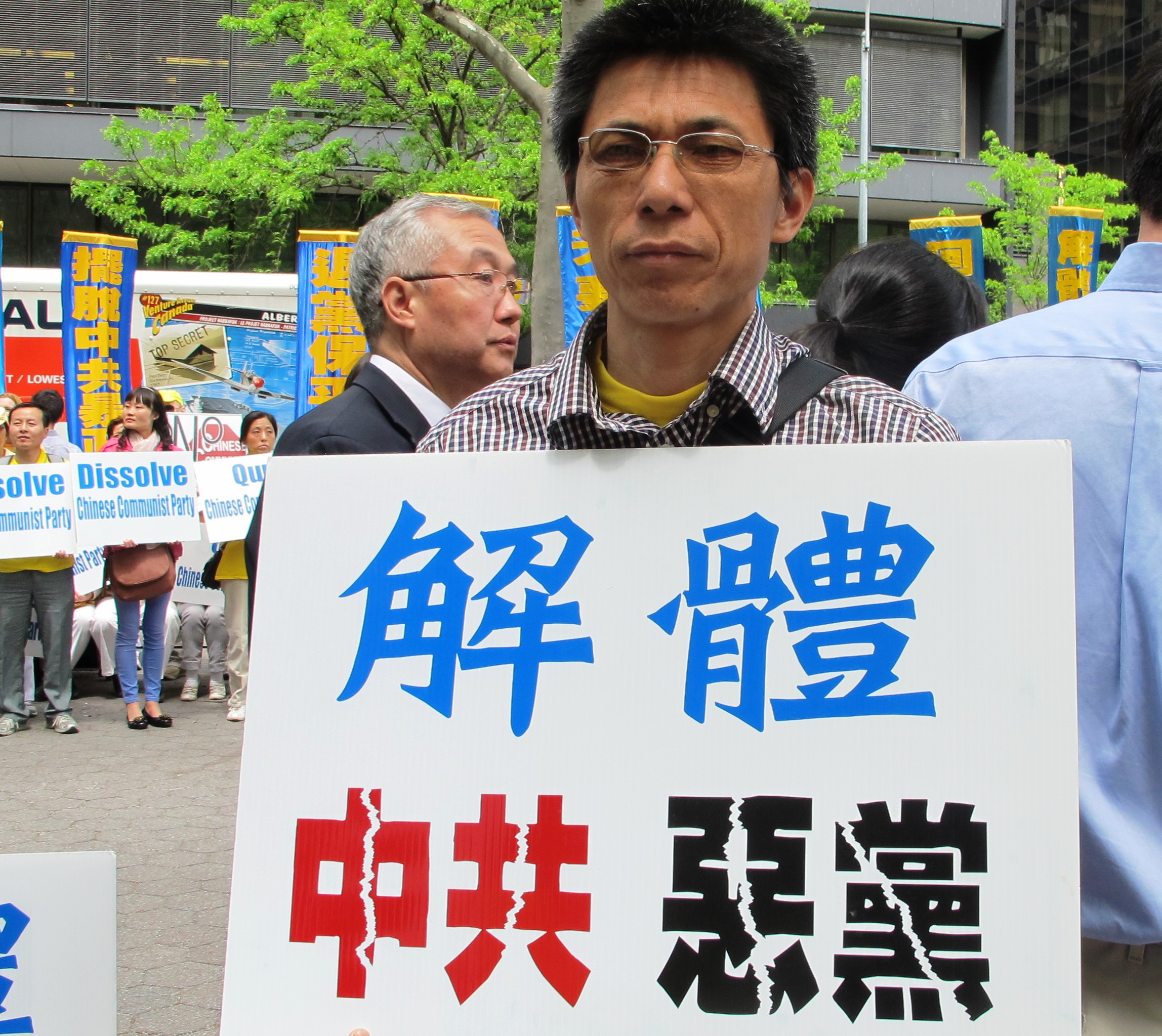 法轮功学员梁彪先生是加拿大居民,这次也来到纽约的游行现场,向过往的民众发资料,讲真相。梁彪的母亲黄秀超女士在中国因为做着同样的事——向中国民众发资料讲真相,被非法监禁在广东省韶关市曲江镇广东省韶关监狱长达四年,经过加拿大政府和海外法轮功学员的营救,获得释放。