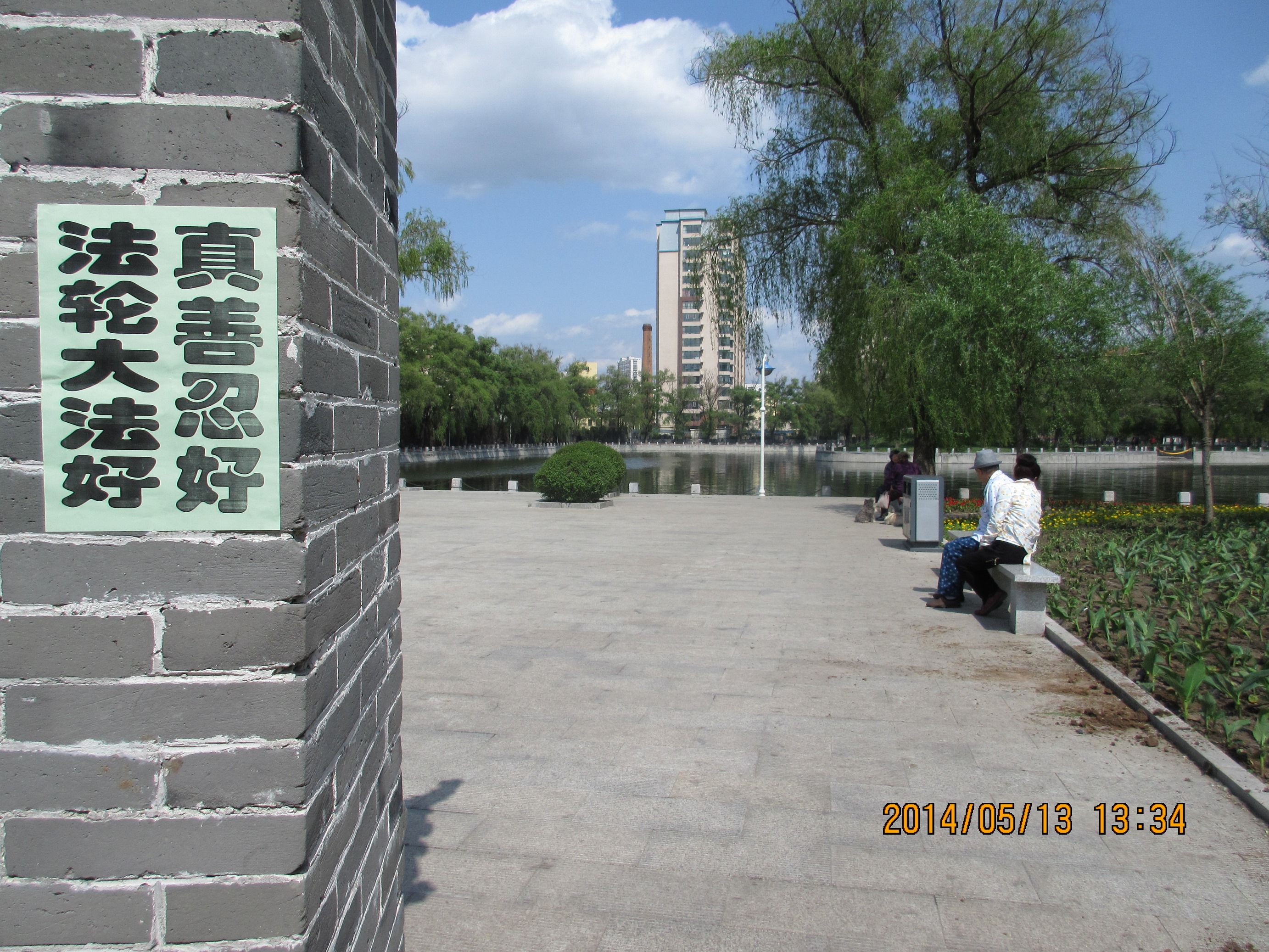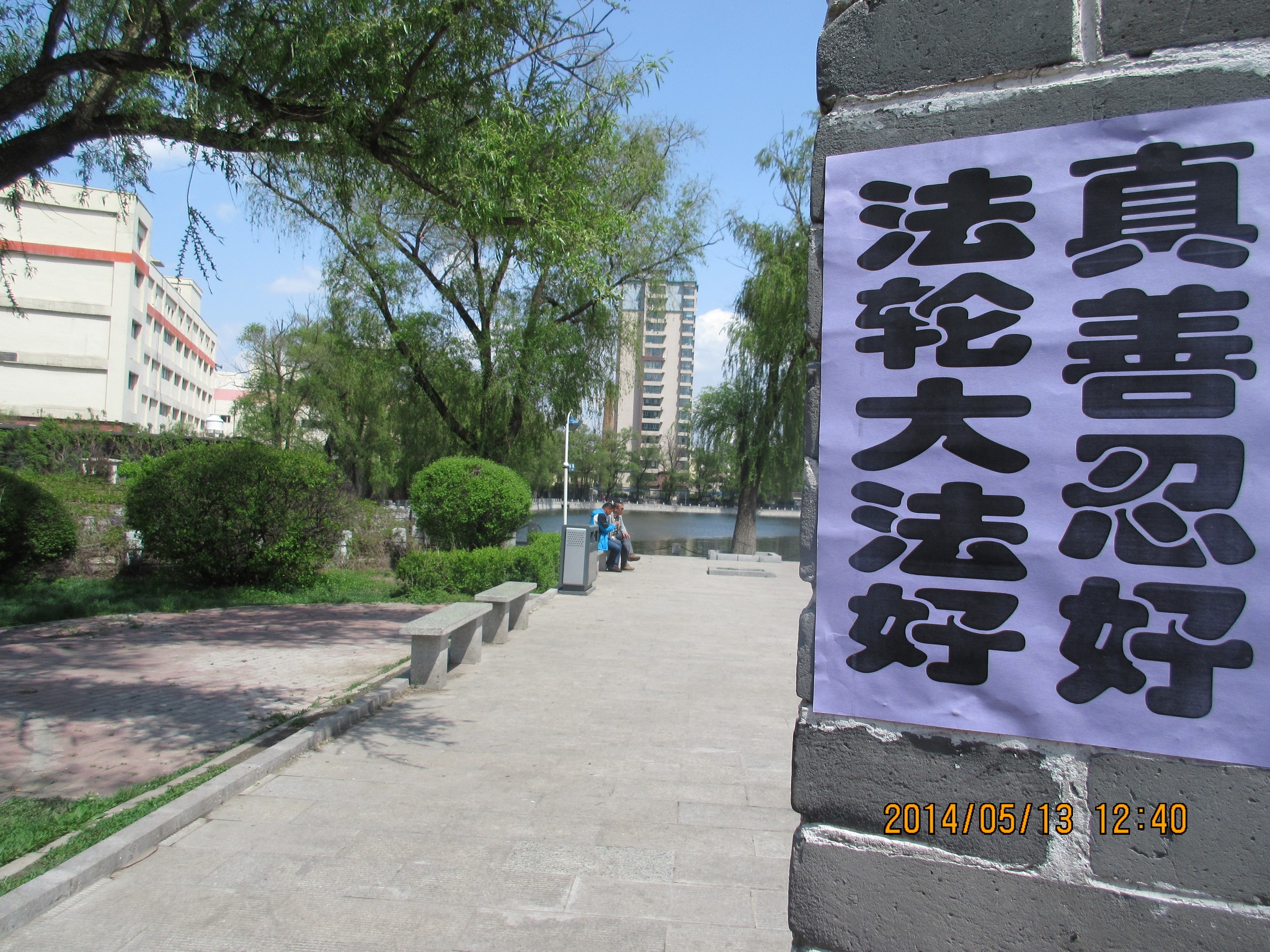 “5.13”世界法轮大法日期间,吉林市市区的“法轮大法好”“真、善、忍好”条幅