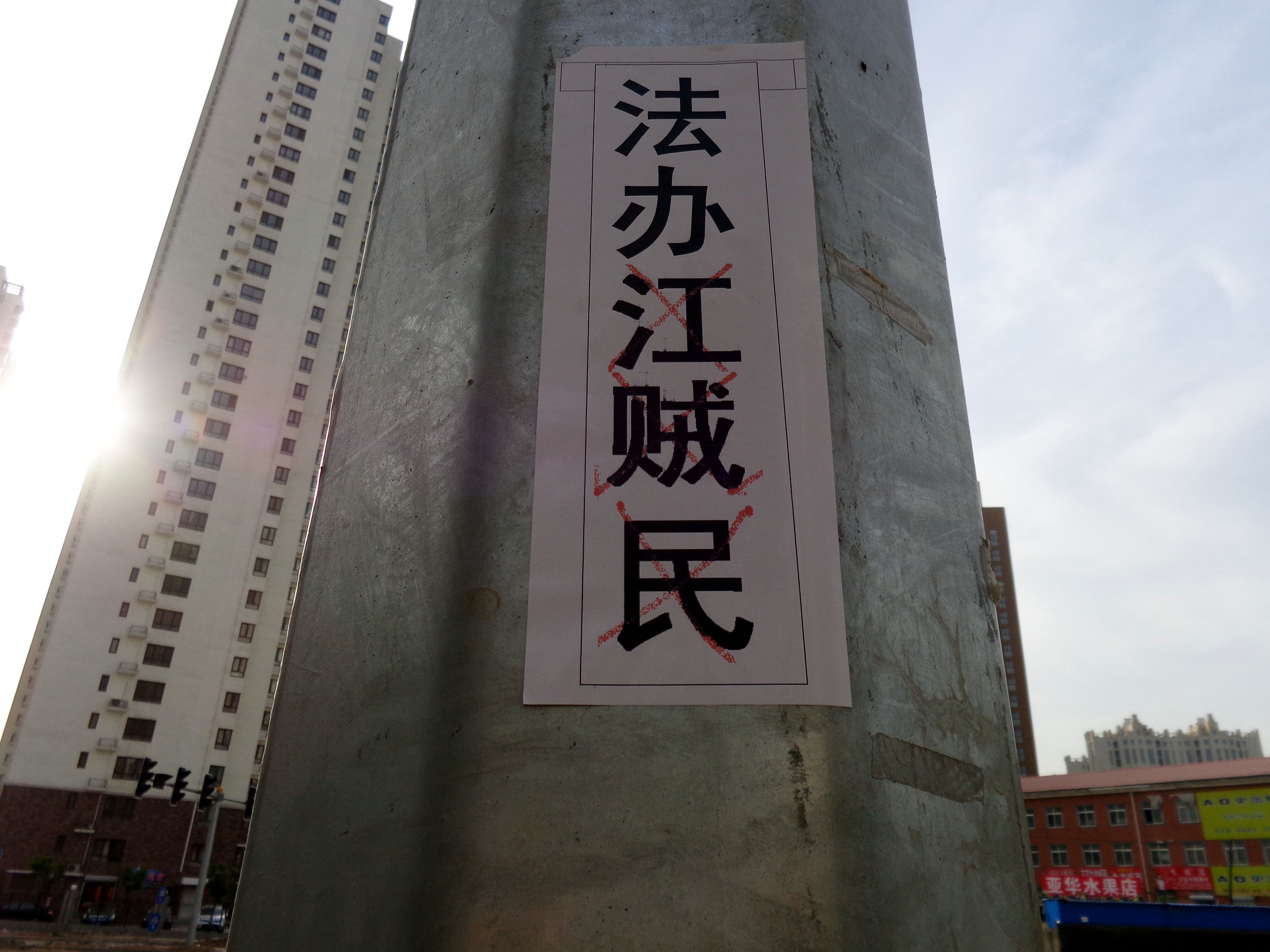 “5.13”世界法轮大法日期间,辽宁省朝阳市街道的法轮功真相条幅
