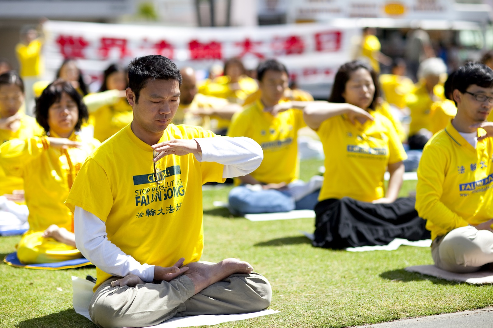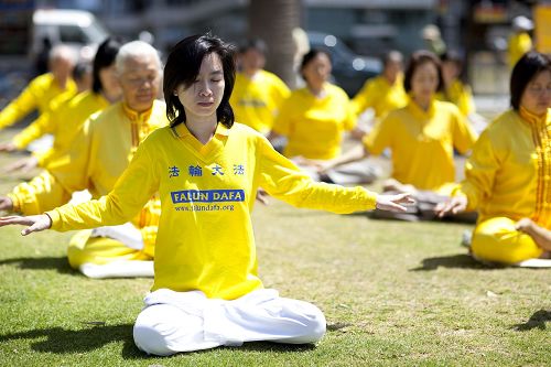 大洛杉矶地区学员集体大炼功,庆祝世界法轮大法日