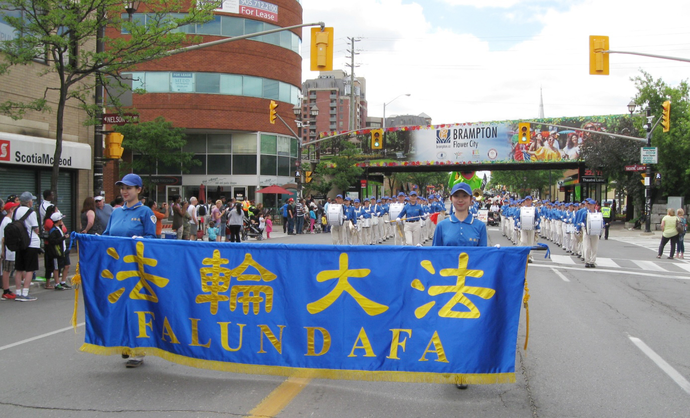 ![]() 多伦多法轮功学员组成的天国乐团应邀参加下午三点的布兰普顿(Brampton)花节游行 |