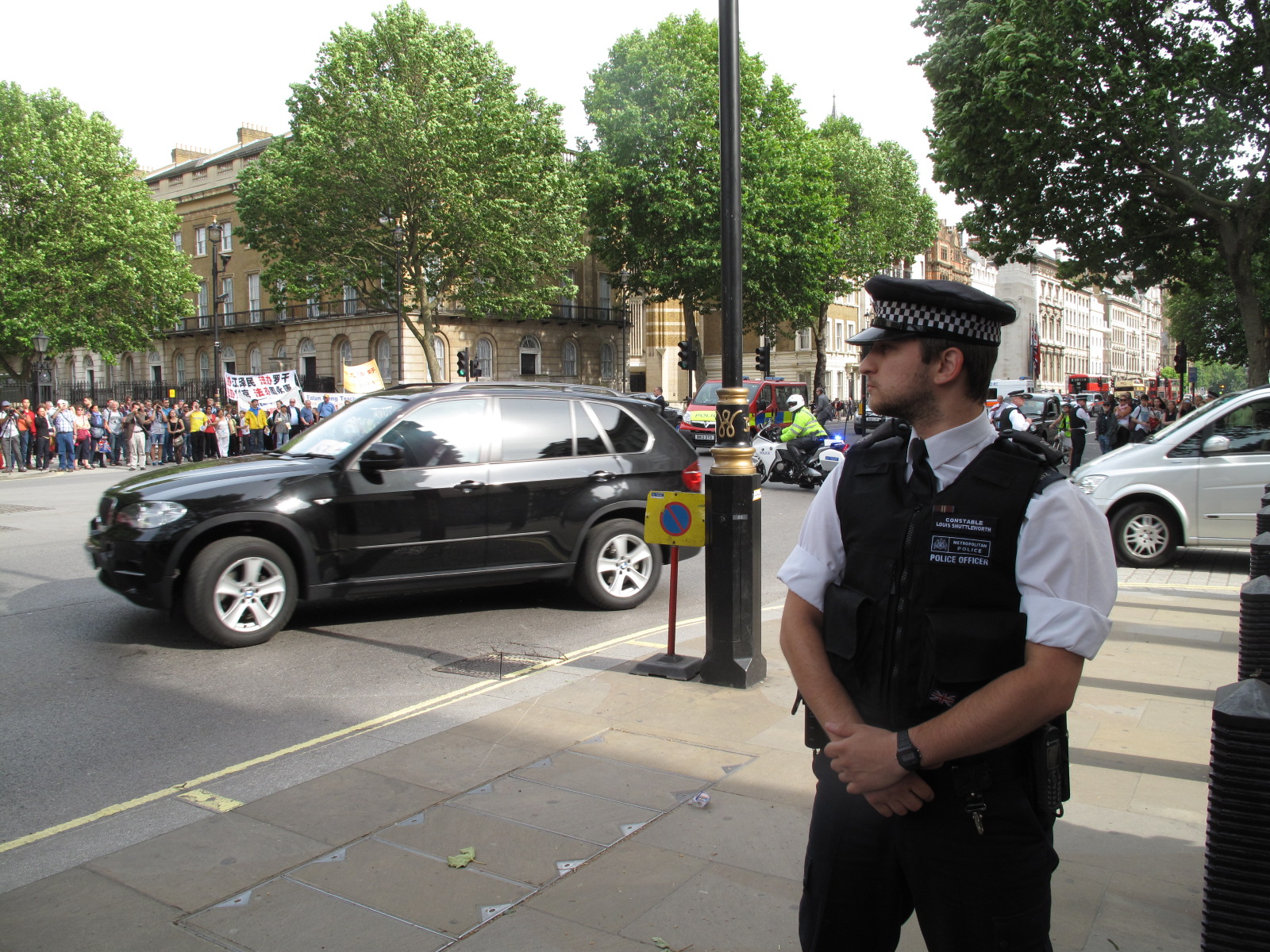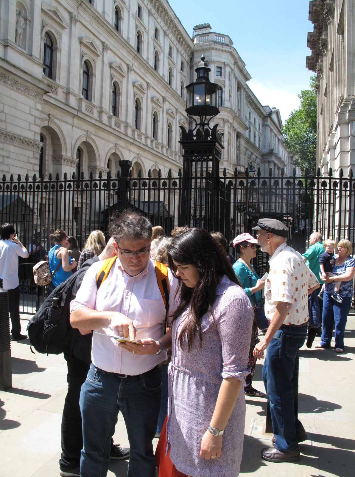 唐宁街门口历来是一个人流量大的旅游热点,外国游客多,中国游客也越来越多。当天在首相府门外,除了法轮功学员外,还有其他多个团体举行抗议活动。维持秩序的警察认为,法轮功学员的抗议队伍是最平和的,学员只是安静地炼功、打横幅、发传单等,没有激烈的情绪表达。当天有许多过往民众了解到法轮功的基本真相,包括李克强的随从人员。