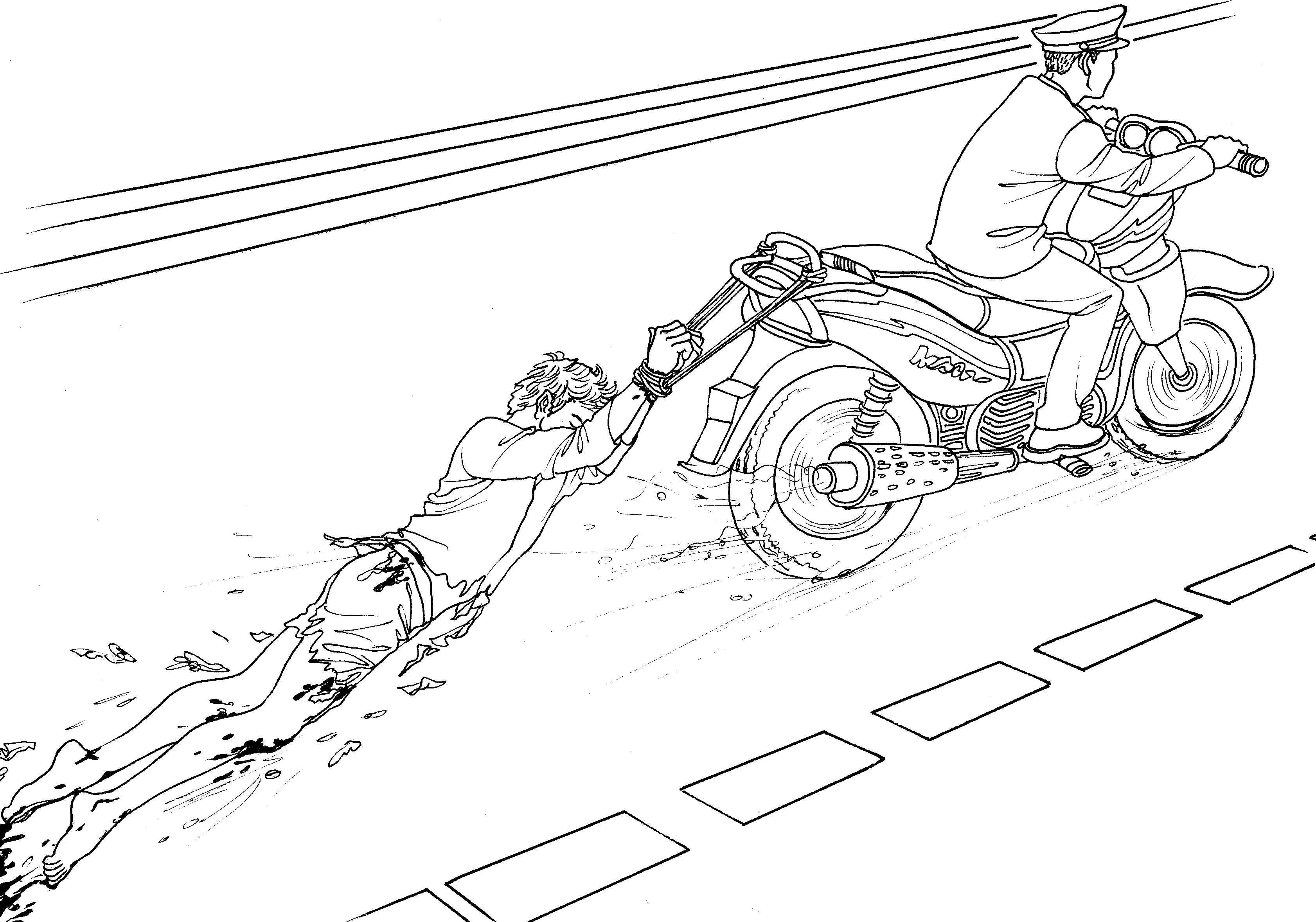 暴徒捏紧他的鼻子,用筷子、锐器撬嘴灌兑了浓盐的大白菜汤,汤汁顺着嘴角流下,流进领子里,背部的衣服湿了,垫絮湿了。一次四、五个警察用电棍电他,直到电耗完。
