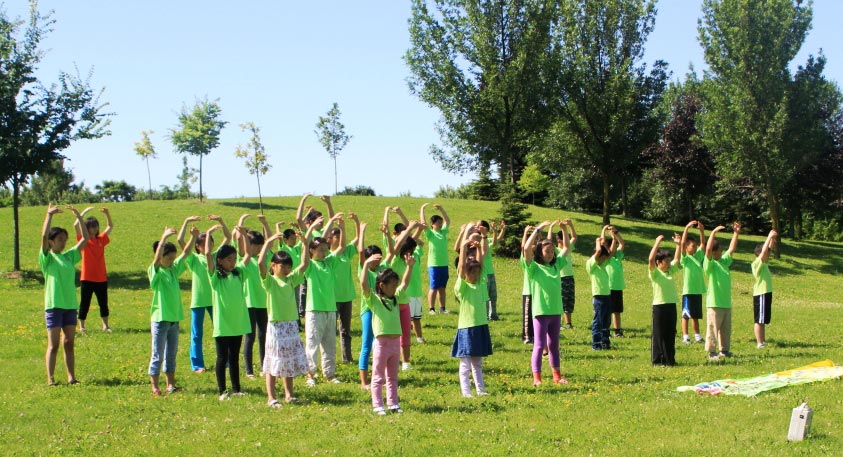 ![]() 二零一三年多伦多明慧学校暑期班,Sunny(前排中间)参加集体炼功。 |