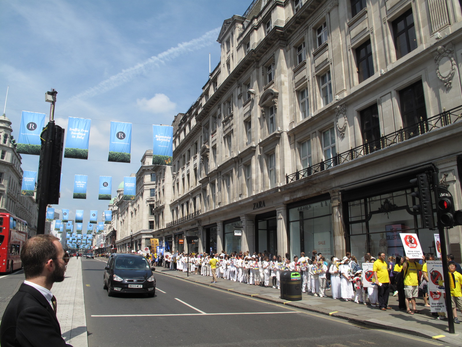 ![]() 二零一四年七月十二日,法轮功学员在伦敦市中心重要地段游行,广传法轮功真相 |