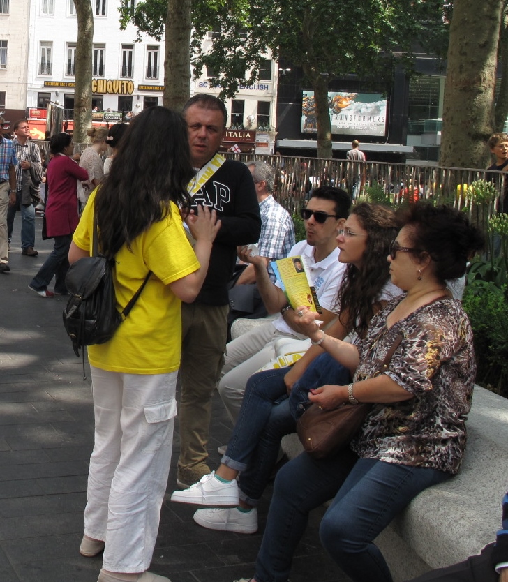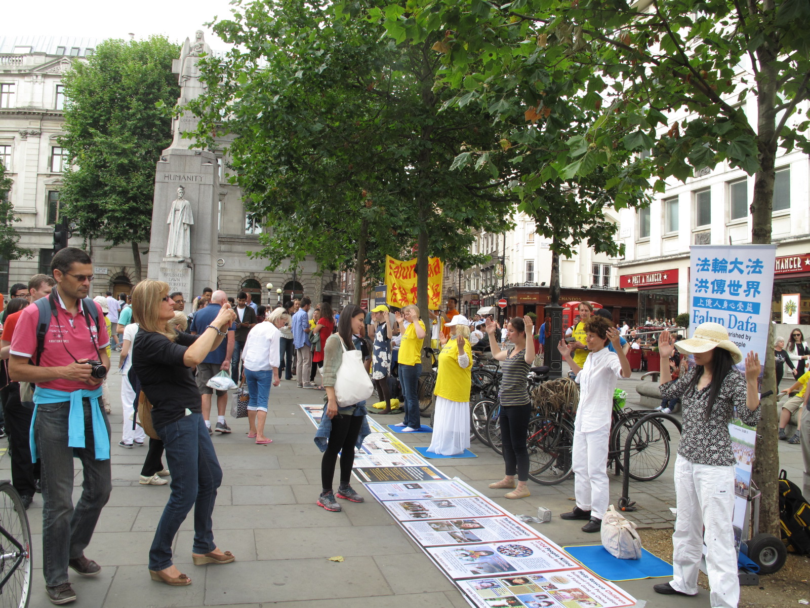![]() 二零一四年七月十二日,法轮功学员在伦敦唐人街展示法轮大法美好、讲真相 |