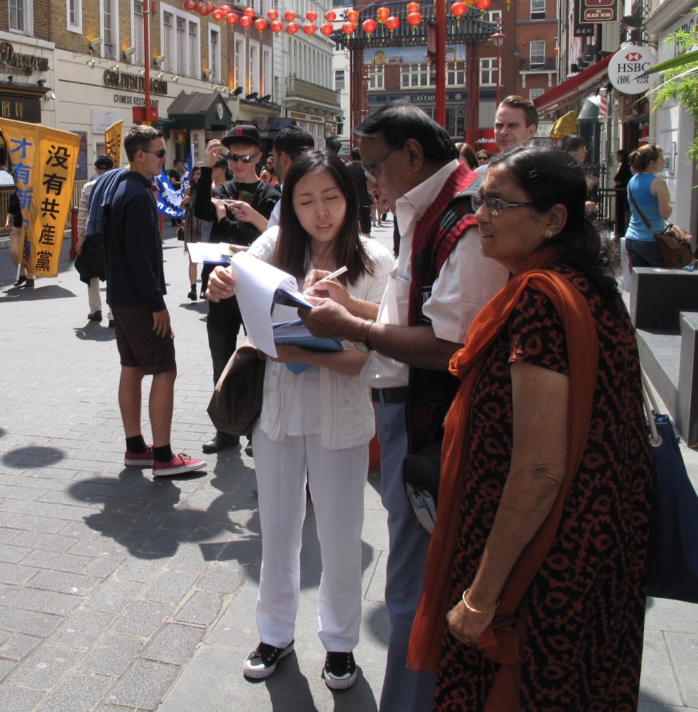![]() 在伦敦唐人街,游人签名支持法轮功反迫害 |