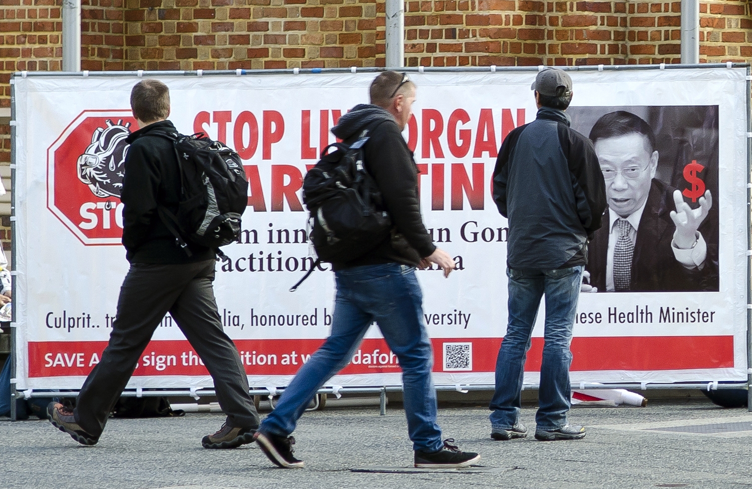 ![]() 图:西澳首府珀斯市商务中心街口醒目的大横幅,揭露中共活摘器官暴行 |