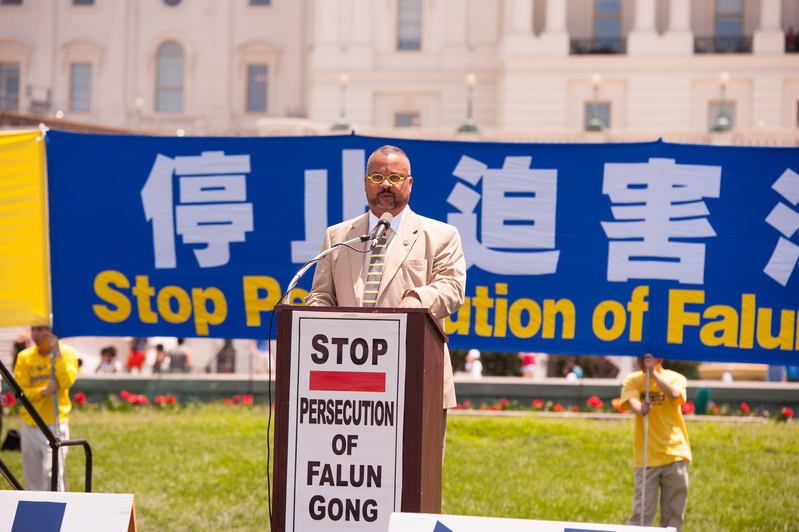 新泽西州国会众议员唐纳德•佩恩(Donald M. Payne, Jr. )在集会上说:“法轮功基于真善忍的普世价值,通过去除不好的思想和习惯,辅以打坐炼功,来达到身心健康。”“非常不幸的是在过去十多年,法轮功学员遭受了种种的拘禁、压迫、折磨、杀害,甚至是被活摘器官。有很多令人关注的证据表明,法轮功学员活着被解剖并被摘取器官,以满足器官移植手术的大量需求。对这样惊骇全球的罪恶,我们要强烈地抗议(中共)他们对人权的践踏。每个人都有选择信仰的自由,这是基本的人权。我们要继续为每一位中国人的人权而抗争。”