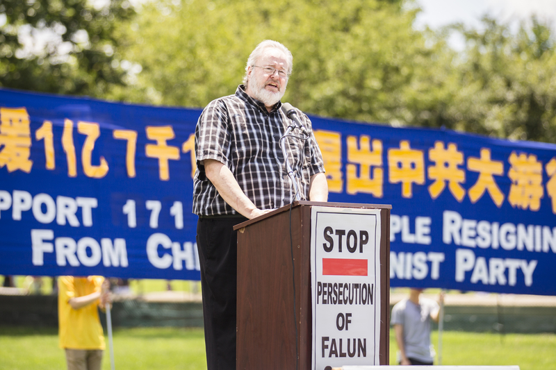 宗教自由大同盟(International Coalition for Religious Freedom)主席丹•菲弗尔曼(Dan Fefferman)在集会上说:“对法轮功的迫害是当今世上对人权最严重的践踏。其中,活摘器官是最大的罪行!中共对法轮功的害怕源于执政者的恐惧,当他们的邪恶和错误被曝光了,就要制造迫害、系统地迫害法轮功,剥夺工作、抓到劳教所和监狱进行折磨,甚至家人都不敢联系他们。这是镇压、迫害、甚至是谋杀。我呼吁美国政府比以往更有力地抗议中共的行为。其实,原则比政治和短期经济利益更重要。我要说,让法轮功自由!让中共解体!”