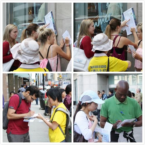 有很多市民了解到法轮功迫害真相后,表示震惊。纷纷地在停止迫害征签表上签名表示支持反迫害。