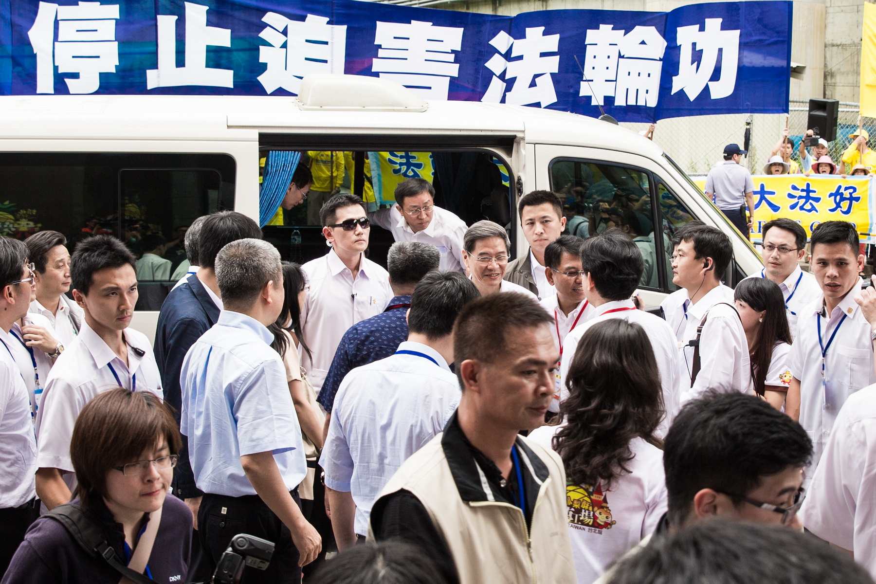 张志军参访汐止、五股工业区,五股的参访地点都有抗议团体在等他出现,其中法轮功学员拉起的“强烈谴责中共强摘法轮功学员活体器官”等横幅最醒目,他们在张志军车队经过时高喊“法轮大法好”、“停止迫害法轮功”。