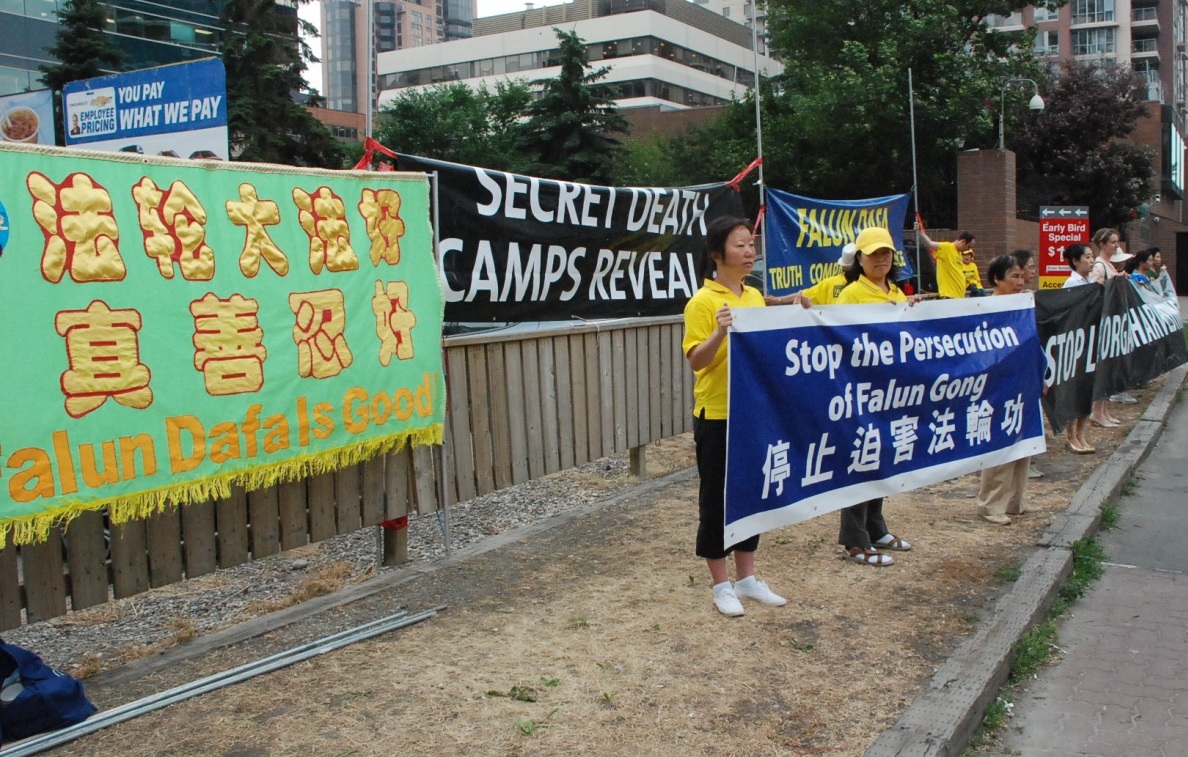 ![]() 卡尔加里法轮功学员在中领馆前抗议中共迫害 |