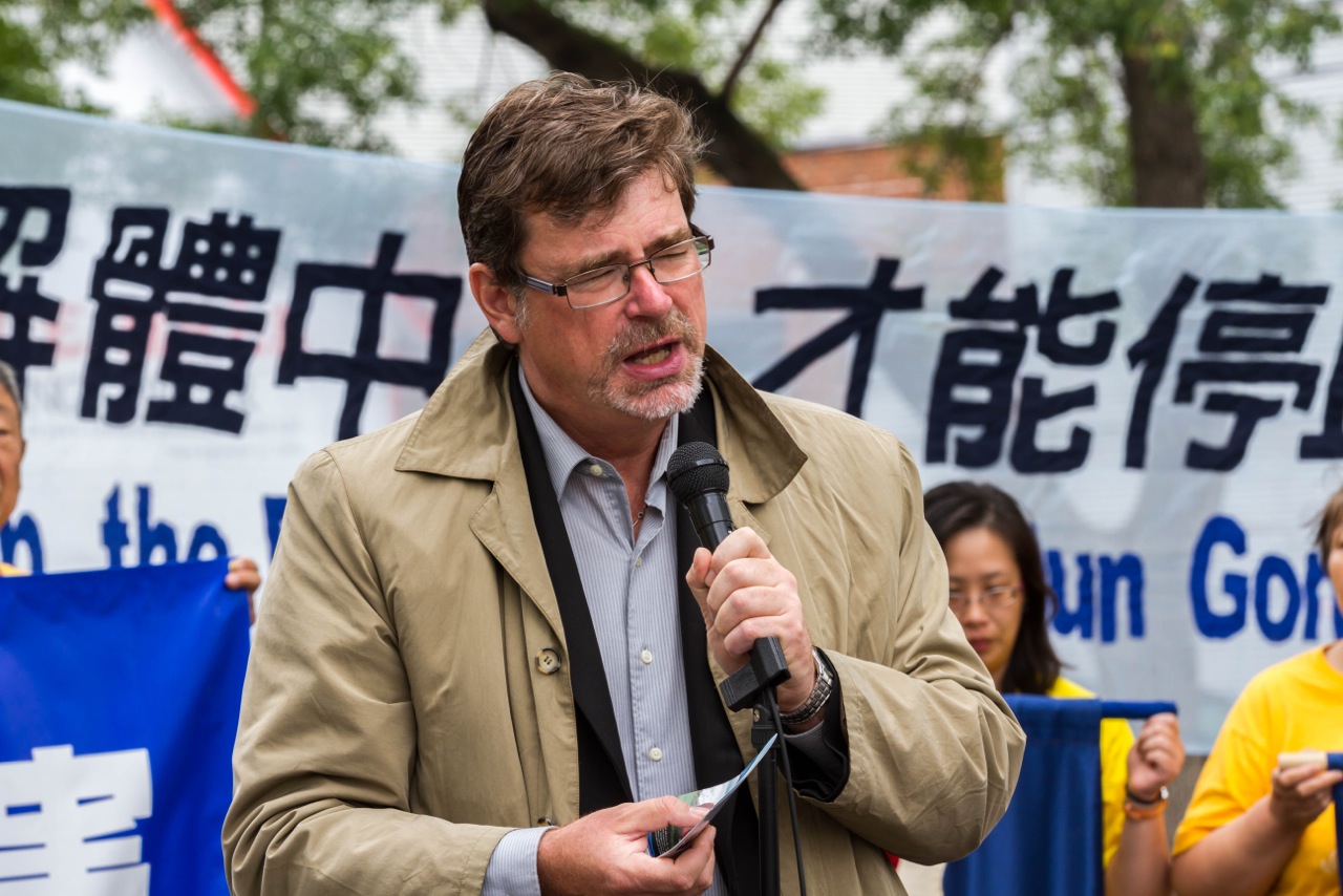 ![]() 国会法轮功之友主席、独立国会议员布伦特•拉特戈贝尔(Brent Rathgeber)在集会上发言 |