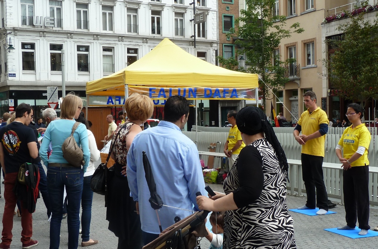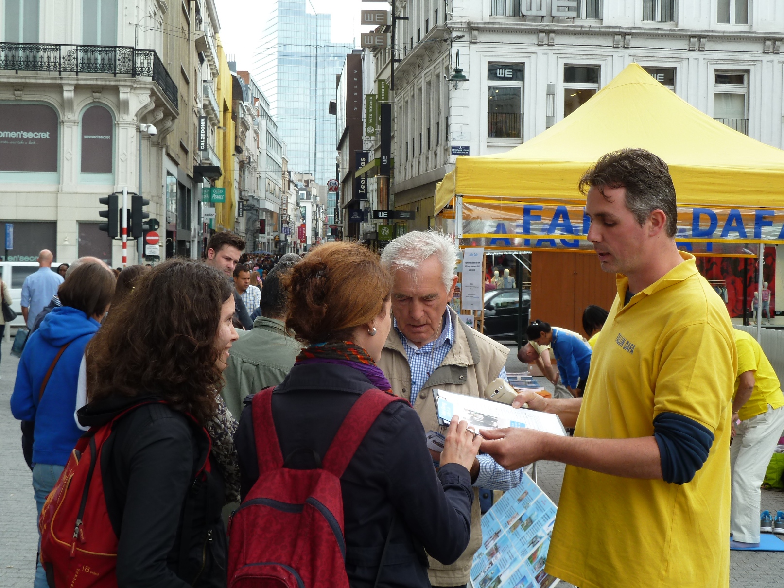 这样的活动在布鲁塞尔每周都会有两次,法轮功学员们利用自己的公休日轮流来参加,他们平和而坚持不懈地告诉世人:法轮大法好,世界需要真、善、忍,迫害必须停止。